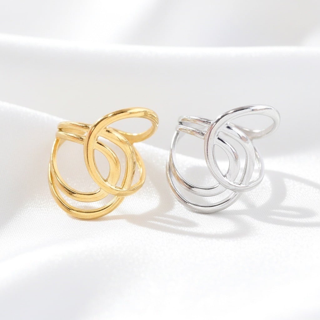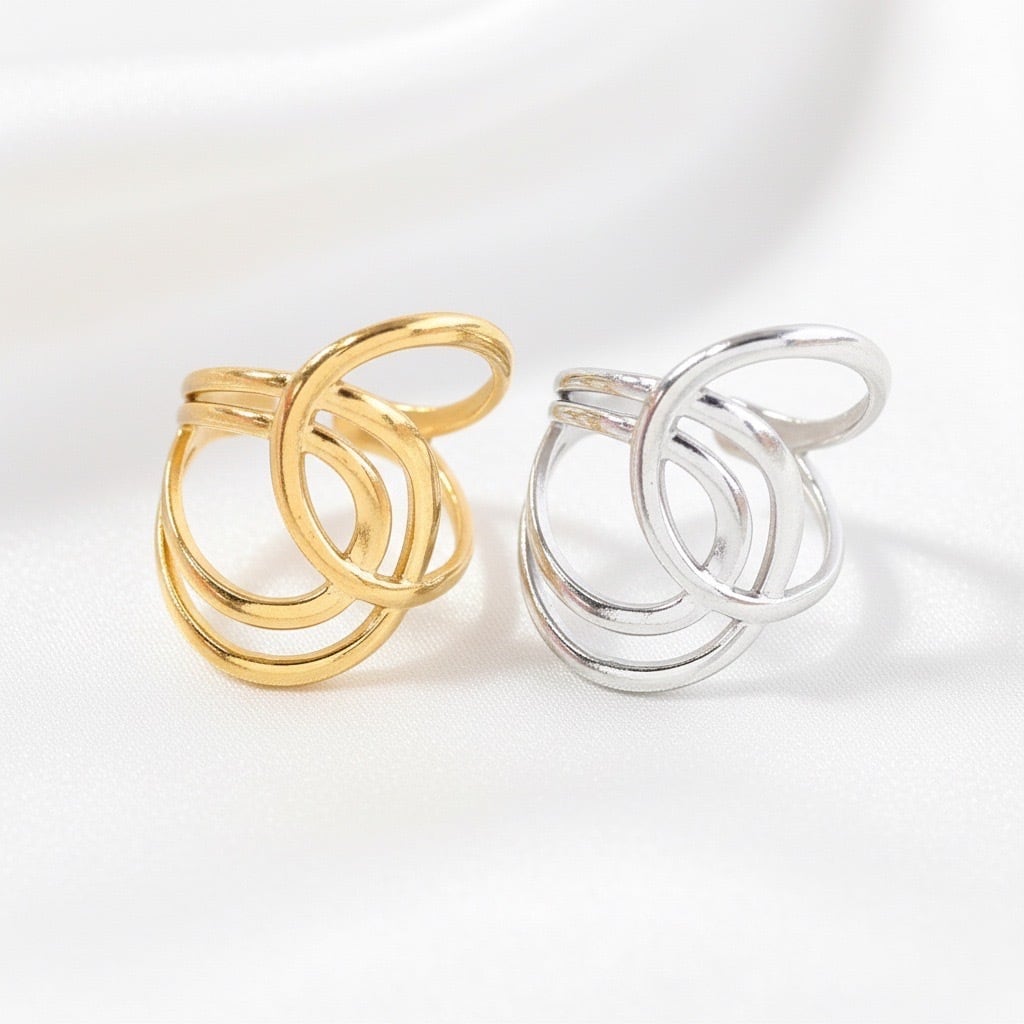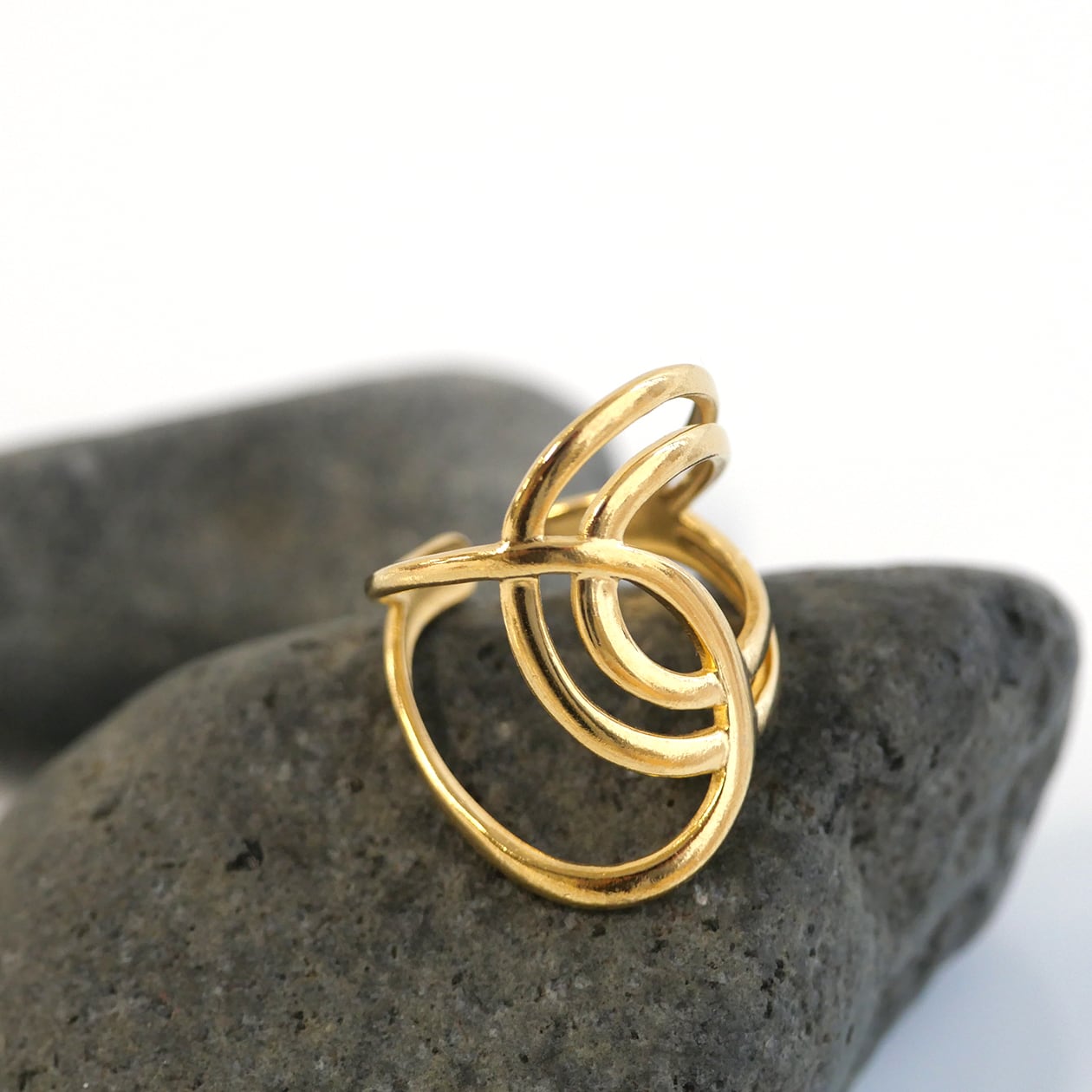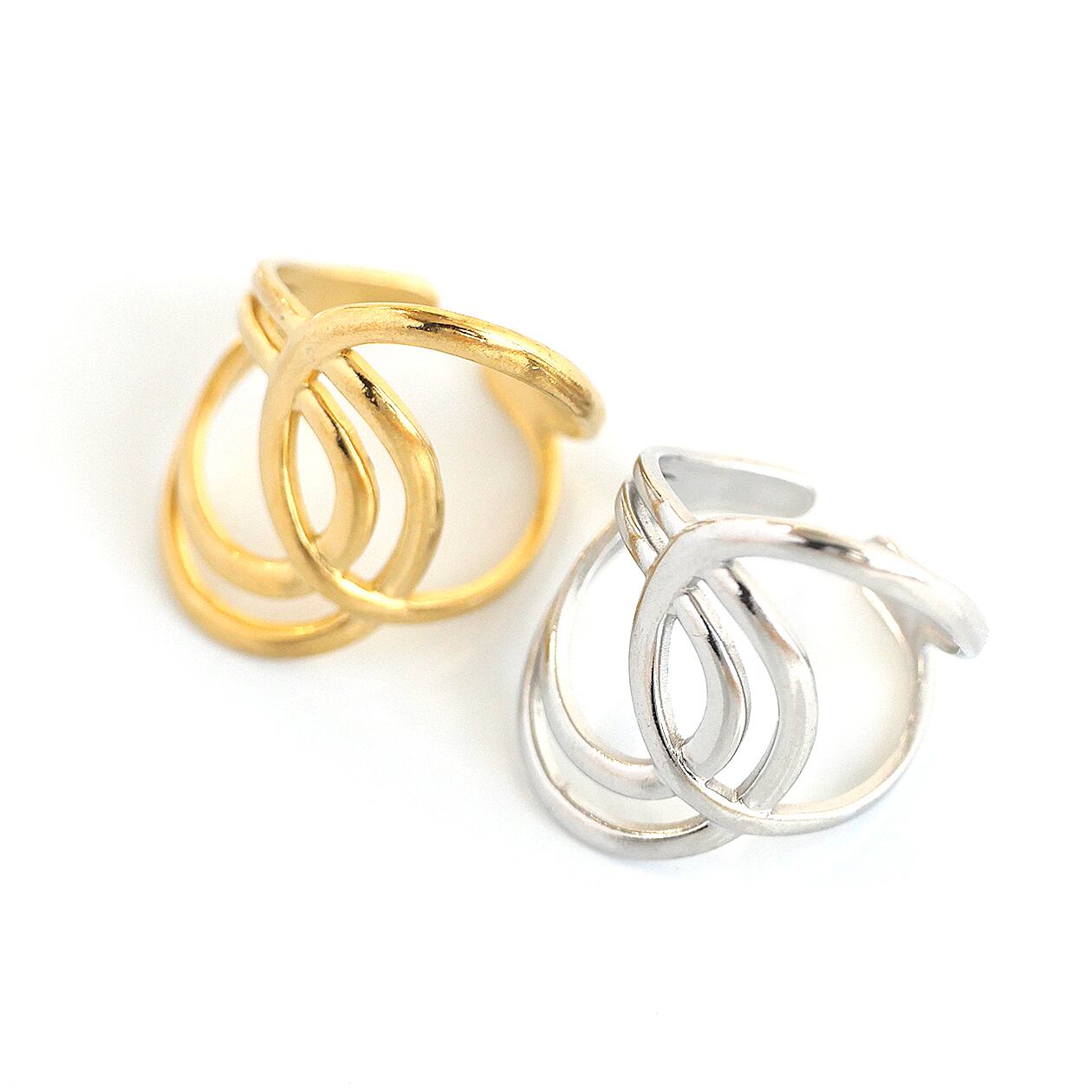 #サージカルステンレス #316Lリング #オープンリング #トリプルループリング #立体リング #曲線デザイン #ゴールドリング #シルバーリング #個性派リング #モードリング #大ぶりリング #重ね付けリング #金属アレルギー対応 #つけっぱなしOK #AtelierBEcudes #指輪