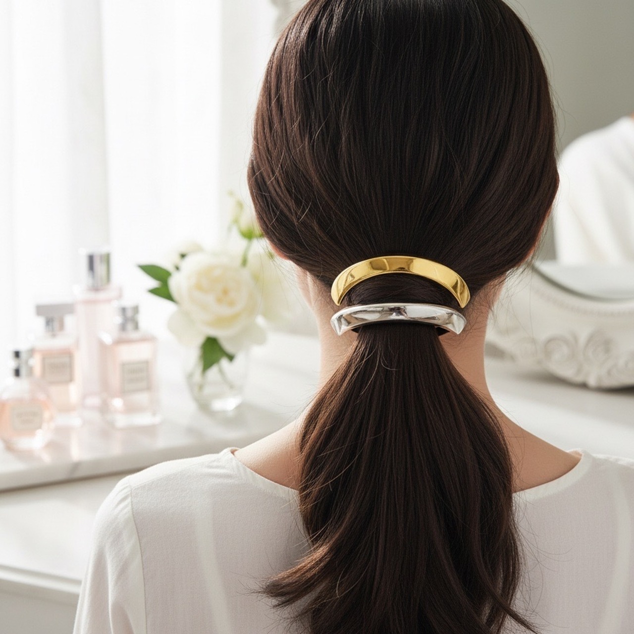#ヘアゴム #ステンレスヘアアクセ #サージカルステンレス316L #ヘアアクセサリー #カーブライン #シンプルデザイン #ゴールドヘアゴム #シルバーヘアゴム #AtelierBEcudes #大人ヘアアクセ #ミニマルアクセ #まとめ髪アイテム