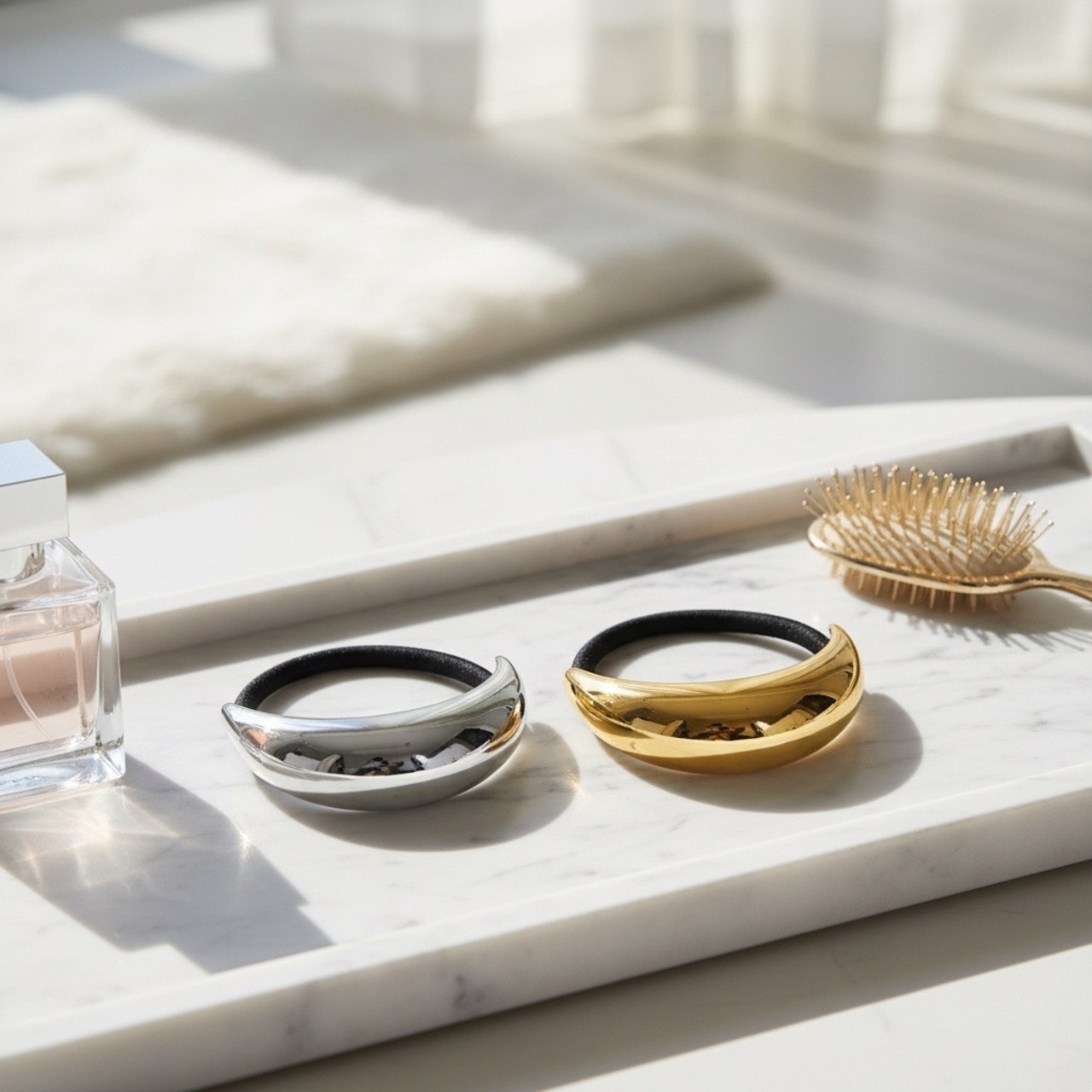 #ヘアゴム #ステンレスアクセサリー #サージカルステンレス316L #ヘアアクセサリー #ムーンデザイン #カーブヘアゴム #ポニーテール #大人ヘア #シンプルデザイン #ゴールドアクセ #シルバーアクセ #AtelierBEcudes #金属アレルギー対応 #まとめ髪 #毎日使いにおすすめ