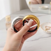 丸みのあるシルエットがやさしく髪に寄り添う、ムーンカーブデザインのヘアゴム。光沢感のあるサージカルステンレス316Lが髪元を上品に彩り、結ぶだけで大人の雰囲気を演出します。シンプルなポニーテールもこれ1つで洗練された仕上がりに。しっかりとした厚みがありながら軽量で使いやすく、デイリー使いはもちろんオフィスやお出かけにも活躍。ゴールド・シルバーの2色展開で、季節やコーデに合わせて選べます。水・汗に強く、長く美しい状態を保てるのも魅力です。