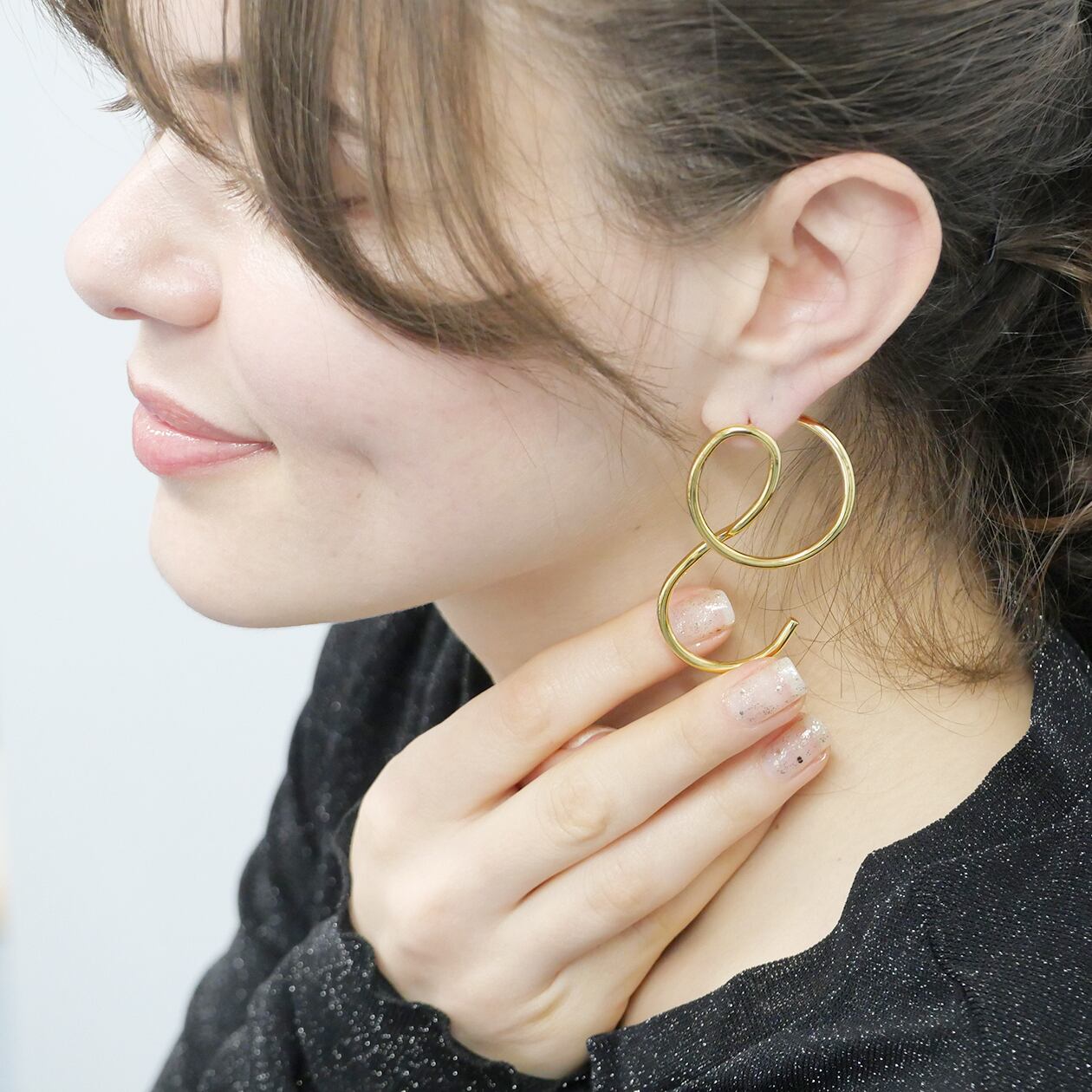 滑らかなラインが耳元に立体感を生み出す、アートピースのようなデザインピアス。大ぶりで存在感がありながら軽やかに見えるフォルムは、横顔を美しく魅せてくれます。ゴールド・シルバーの2色展開で、シンプルな装いに洗練された華やかさをプラス。デイリーからパーティー、フォーマルシーンまで幅広く活躍し、主役級のアクセントとしてコーディネートを引き立てます。