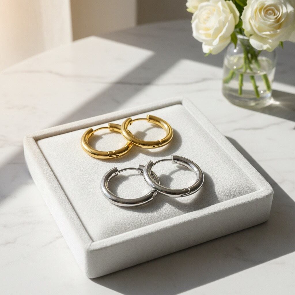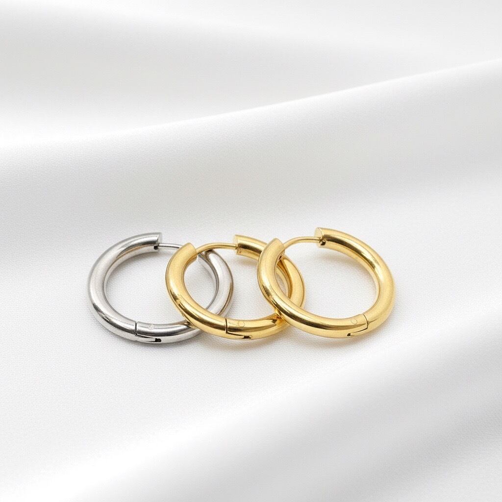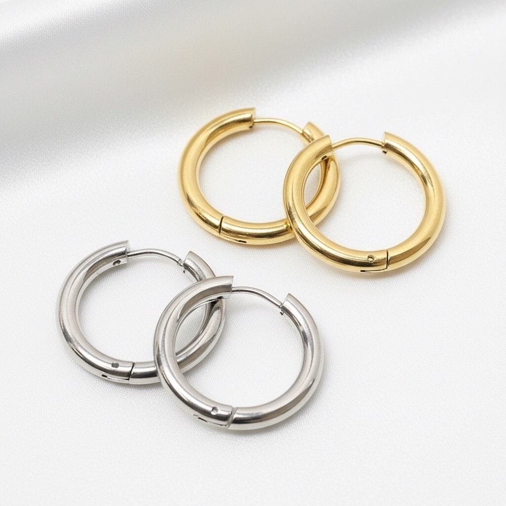 #サージカルステンレス316L #フープピアス #シンプルピアス #ゴールドピアス #シルバーピアス #ワンタッチピアス #金属アレルギー対応 #AtelierBEcudes