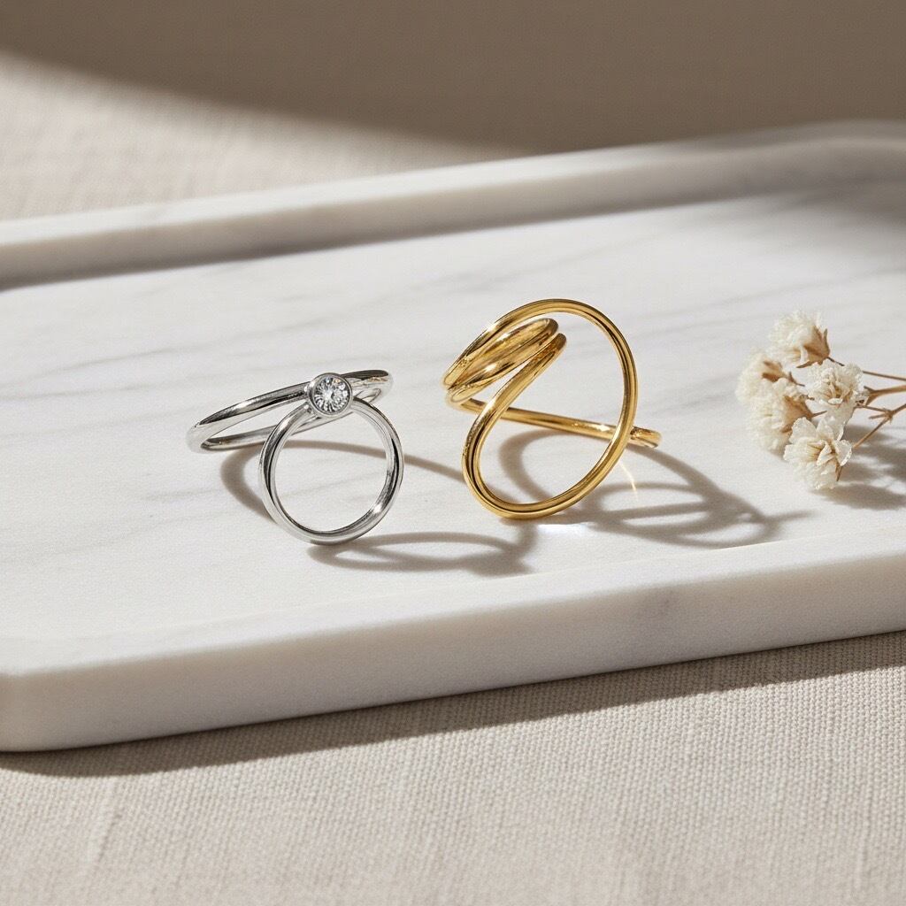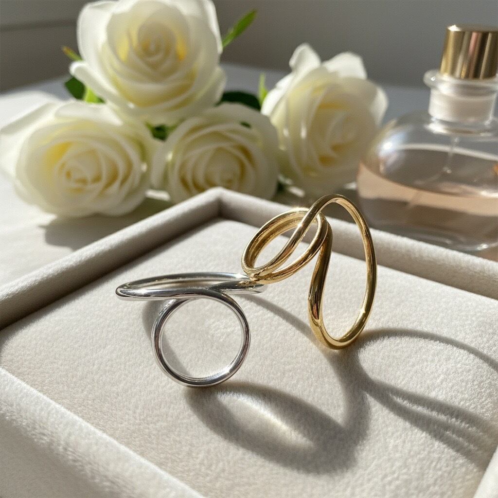 #サージカルステンレス316L #オープンリング #アートリング #ニュアンスリング #ゴールドリング #シルバーリング #モードアクセサリー #個性派リング #指輪コーデ #AtelierBEcudes