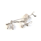 繊細に咲くローズと枝葉のラインを立体的に表現した、上品なローズモチーフブローチ。しなやかに伸びるブランチデザインが、胸元やストールに自然な動きを添え、コーディネートをさりげなく格上げしてくれます。ジャケットやニット、ワンピースはもちろん、帽子やバッグのアクセントとしてもおすすめです。派手すぎず上品な存在感で、日常使いからセレモニー、ギフトまで幅広く活躍するフラワーブローチ。植物モチーフがお好きな方や、大人の装いにさりげない華を添えたい方におすすめの一点です。
