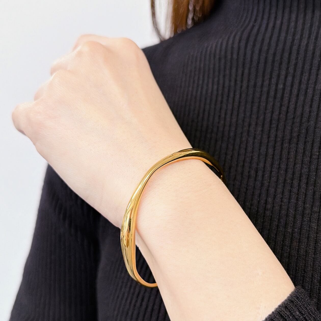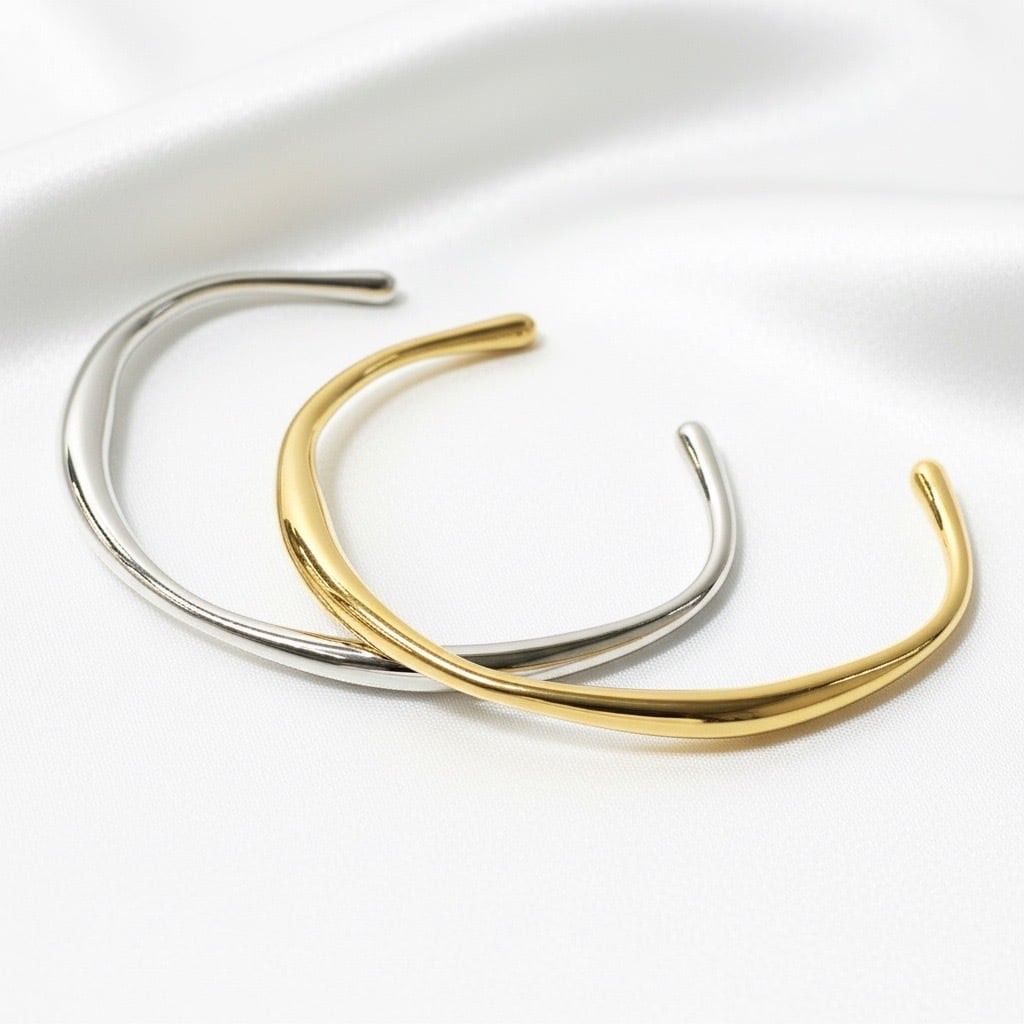 #サージカルステンレス316L #ステンレスバングル #カーブバングル #シンプルバングル #ゴールドバングル #シルバーバングル #大人アクセサリー #ミニマルジュエリー #モードアクセサリー #デイリーアクセサリー #重ね付け #ギフトにおすすめ