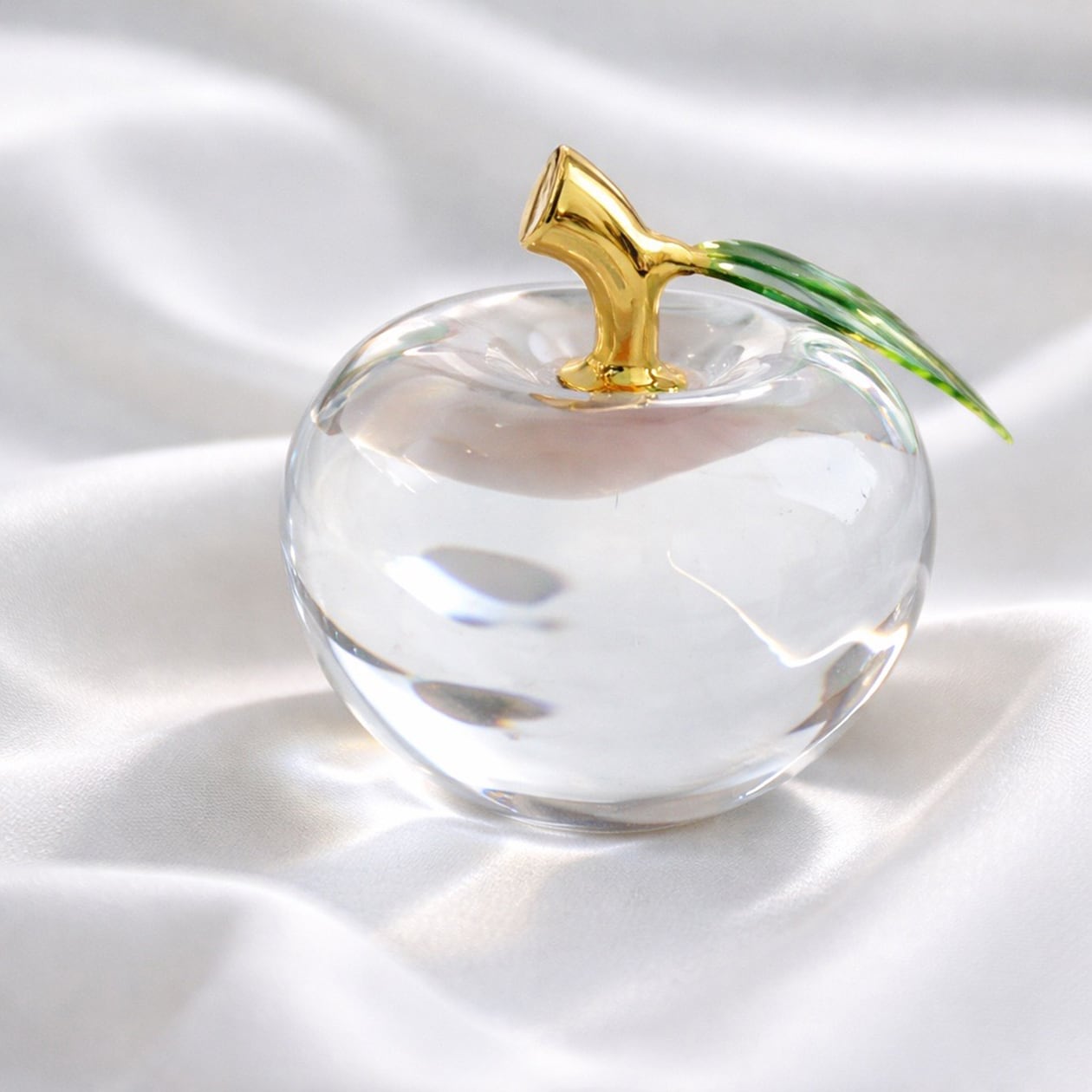 ころんとしたフォルムが愛らしい、リンゴモチーフのガラスオブジェ。手のひらに収まるSmallサイズながら、ガラスならではの透明感と艶やかな質感が際立ち、光を受けて美しくきらめきます。葉と茎のディテールまで丁寧に表現され、シンプルながら上品な存在感を放つデザインに仕上げました。玄関やデスク、棚の上など省スペースにも飾りやすく、季節を問わずインテリアのアクセントとして活躍します。フルーツモチーフやガラスインテリアがお好きな方はもちろん、さりげない贈り物にもおすすめ。空間にやさしい彩りと遊び心を添えてくれるガラスオブジェです。