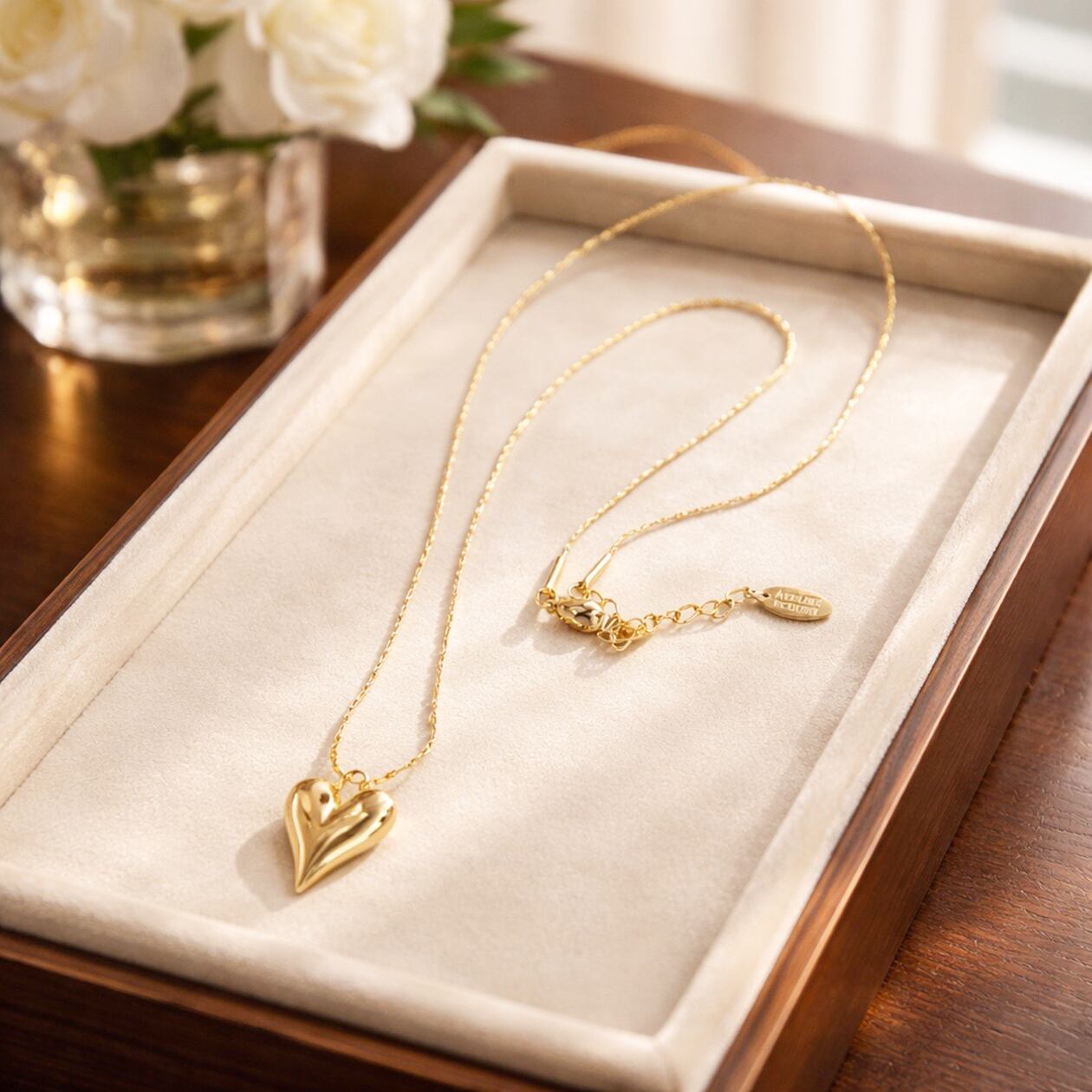 ふっくらと立体感のあるハートモチーフをあしらった、上品で洗練されたネックレス。