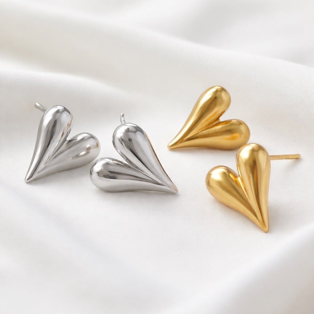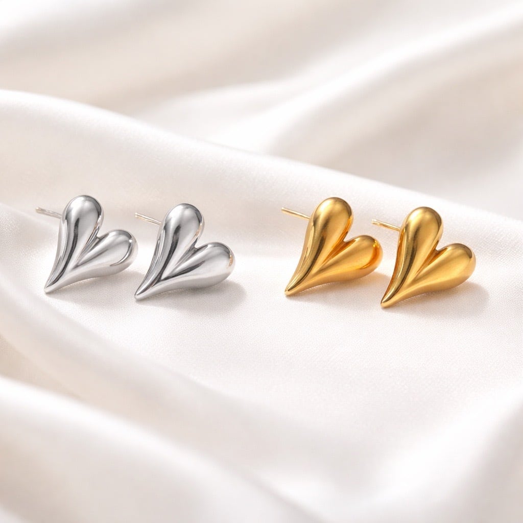 #サージカルステンレス316L #ハートピアス #立体ハート #ミニマルピアス #シンプルアクセサリー #ゴールドピアス #シルバーピアス #デイリージュエリー #大人アクセサリー #ギフトにおすすめ #AtelierBEcudes
