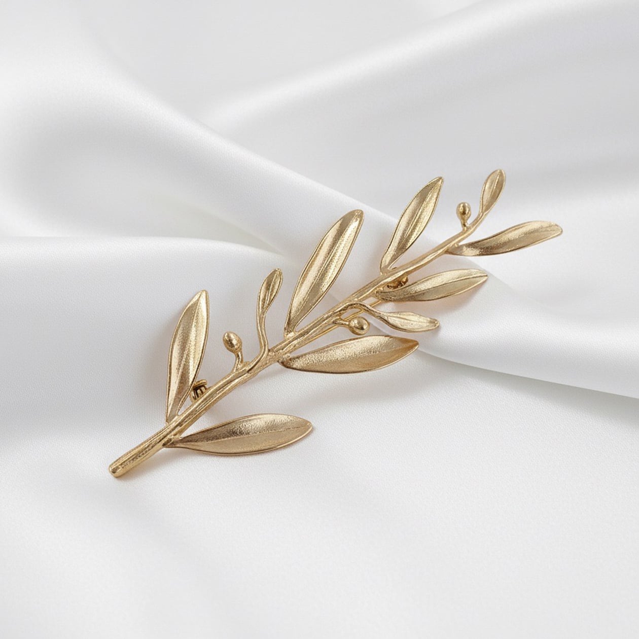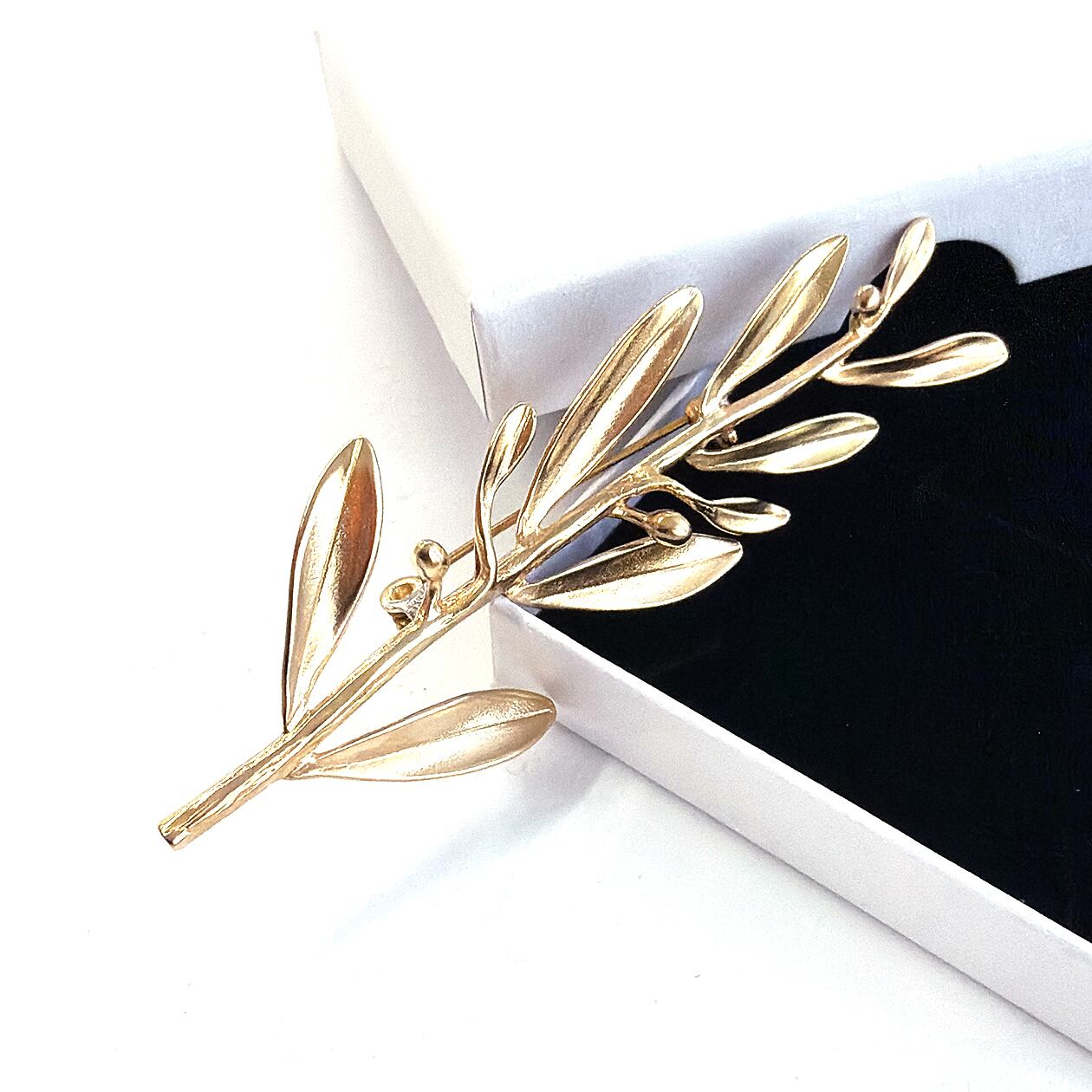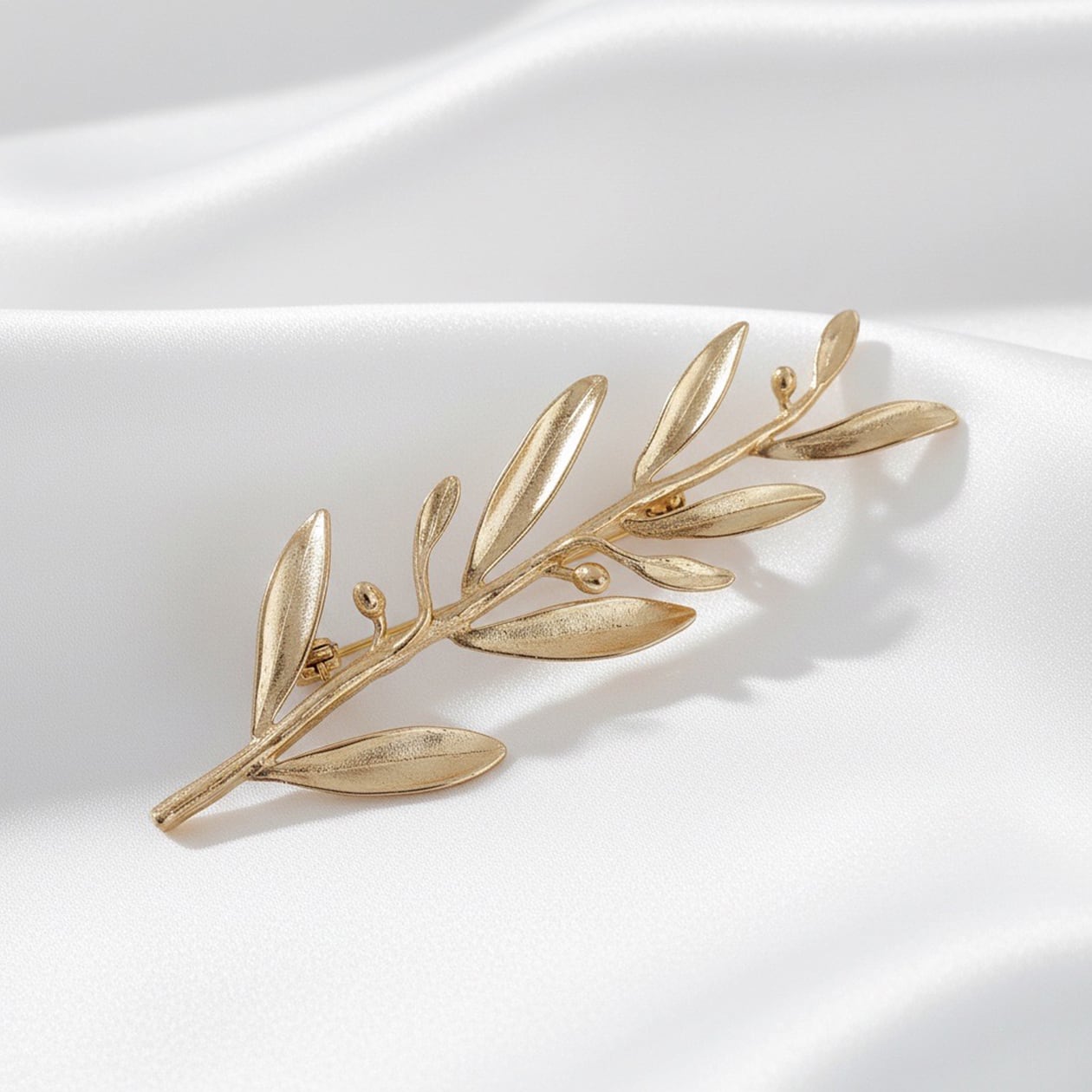 植物の枝葉をモチーフにした、アンティーク調の真鍮製ブローチ。繊細に伸びるリーフデザインと、落ち着きのあるゴールドカラーが上品な存在感を演出します。程よい立体感とマットな質感が、ジャケットやコート、ニット、ワンピースなど幅広いスタイルに自然に馴染み、装いにさりげない華やかさを添えてくれます。