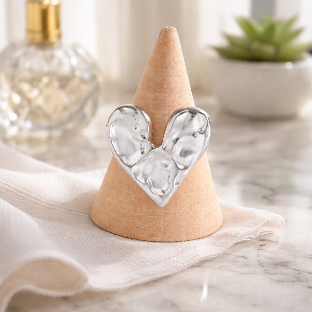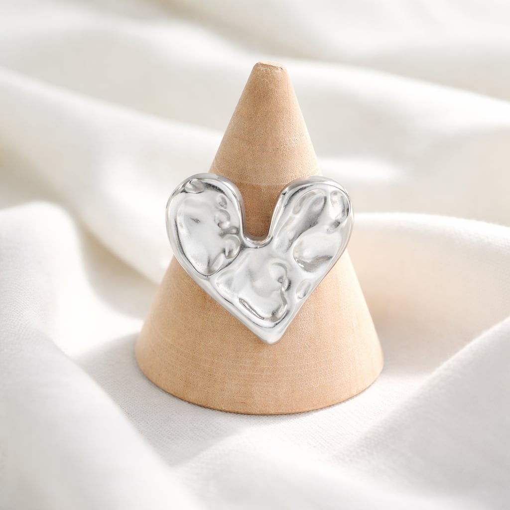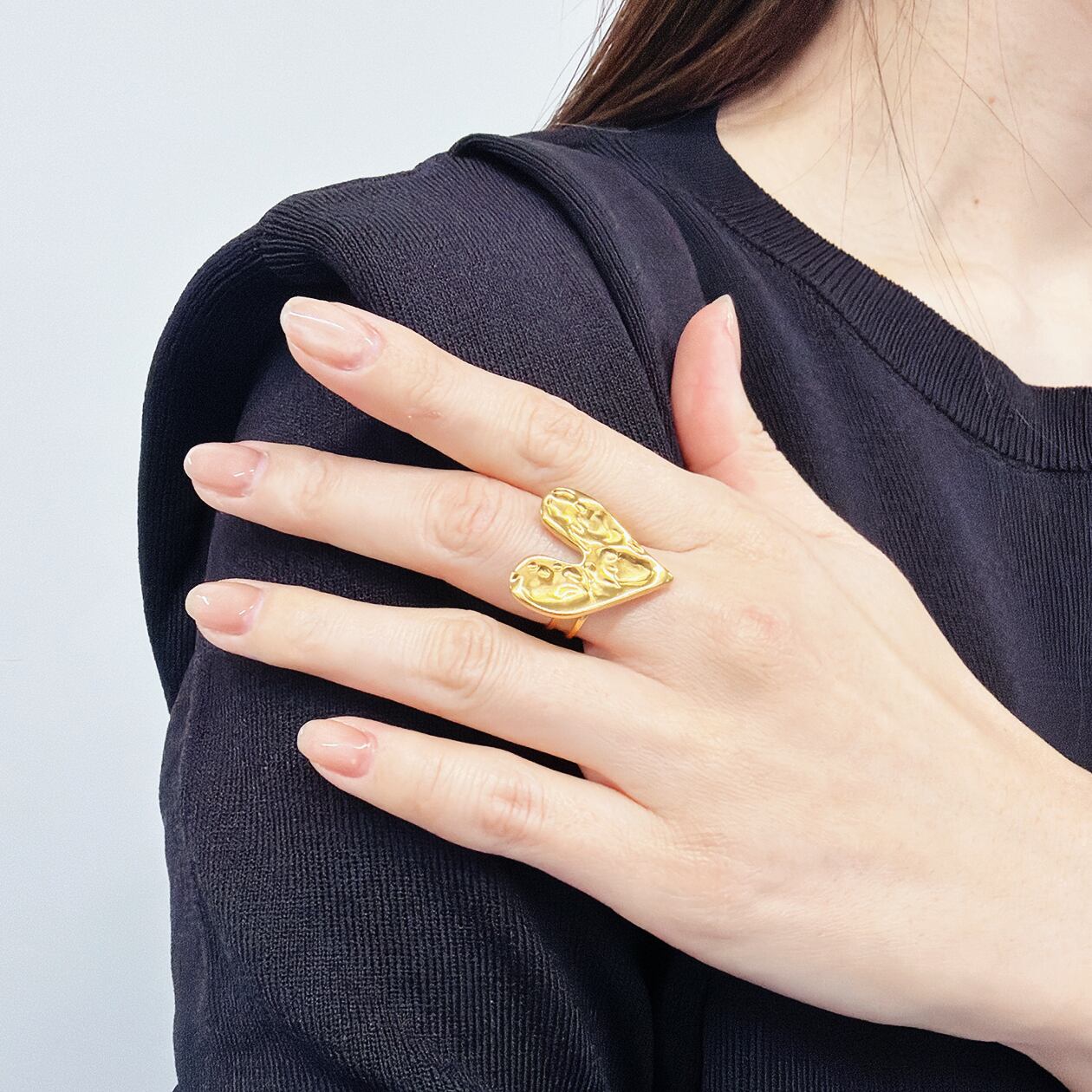 有機的な凹凸をもたせたハートモチーフが印象的な、大ぶりデザインのオープンリング。