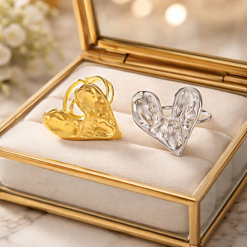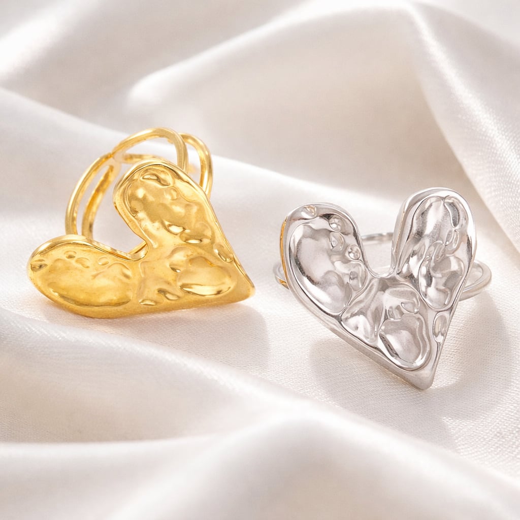 #大ぶりリング #ハートモチーフ #デザインリング #オープンリング #サージカルステンレス316L #ゴールドリング #シルバーリング #艶感リング #モードアクセサリー #AtelierBEcudes