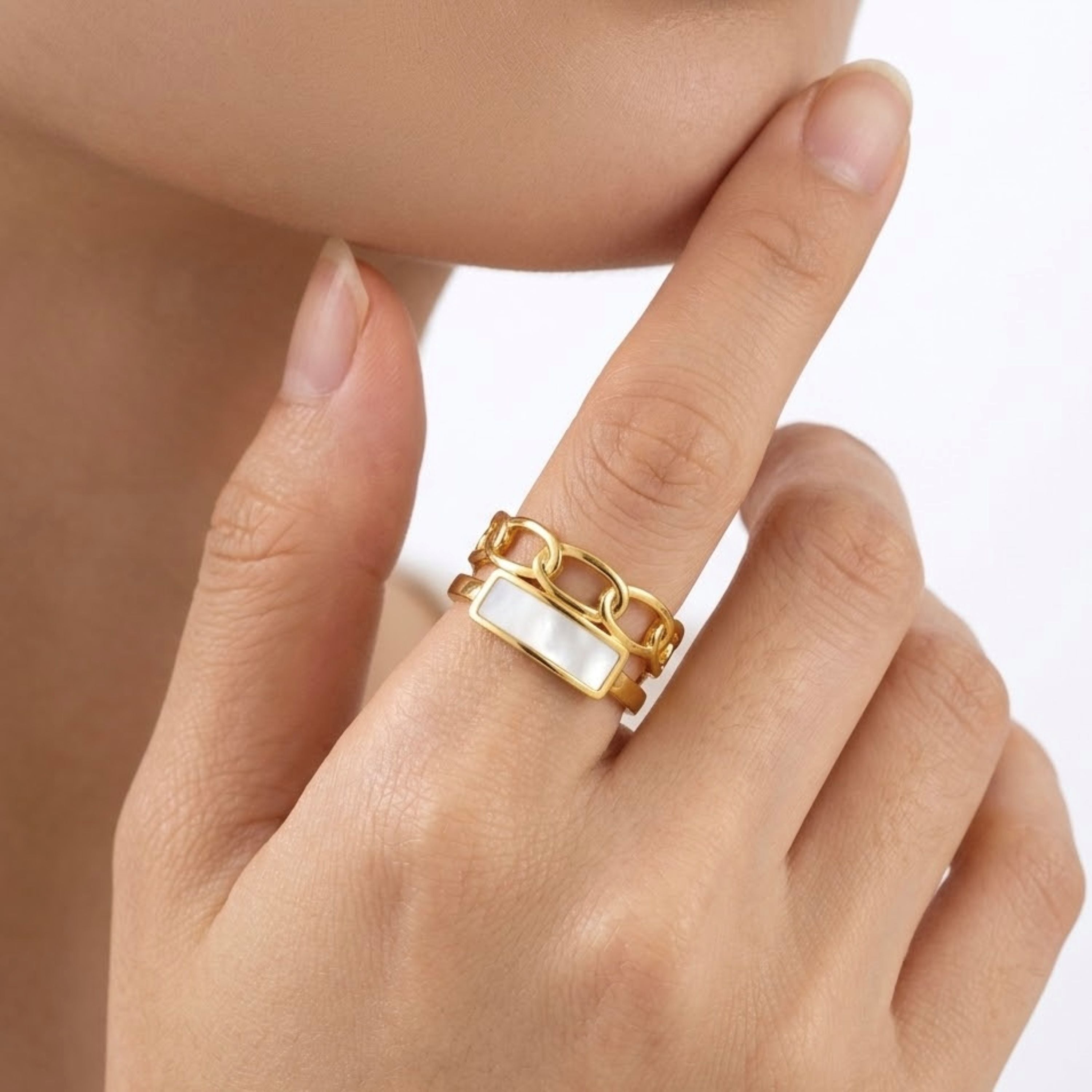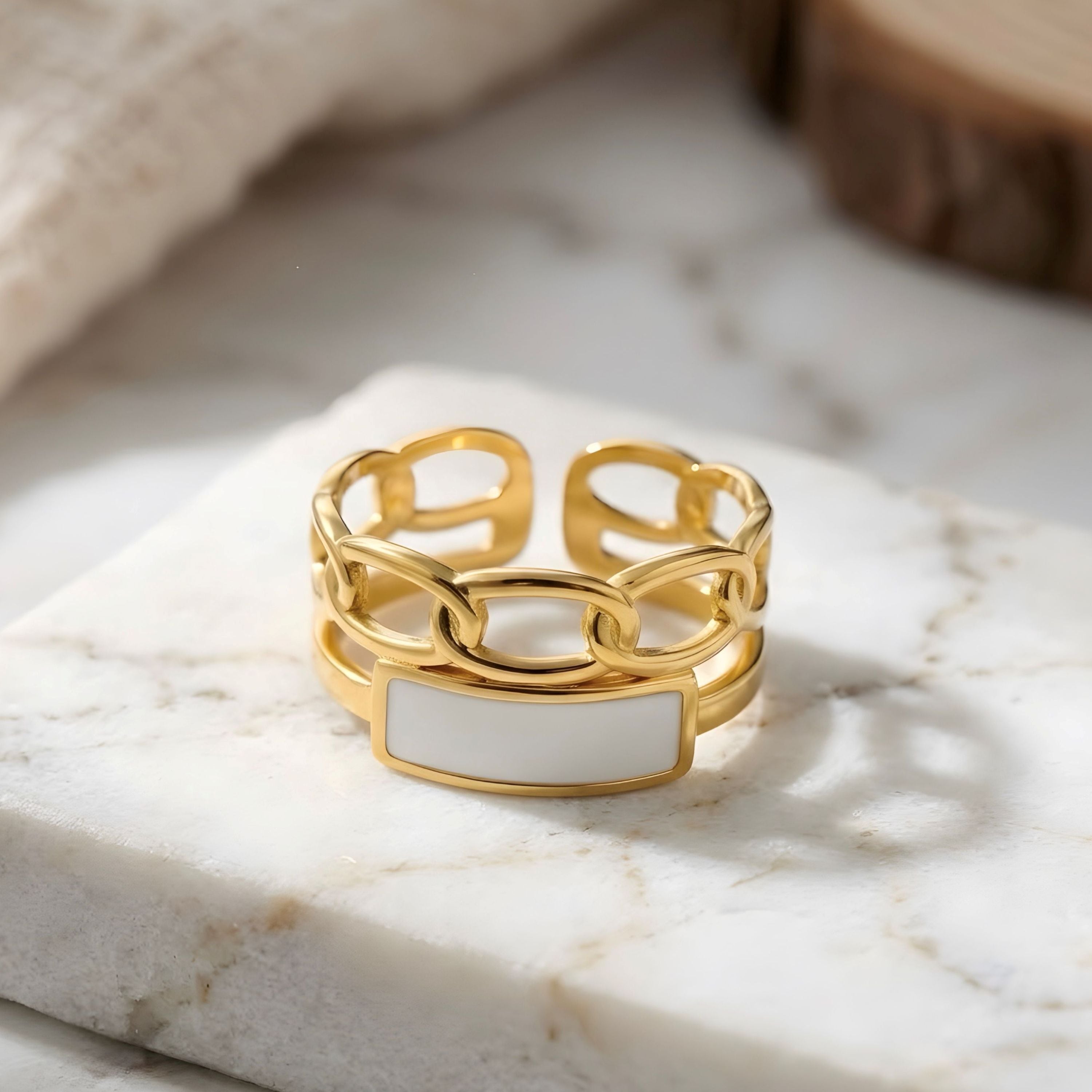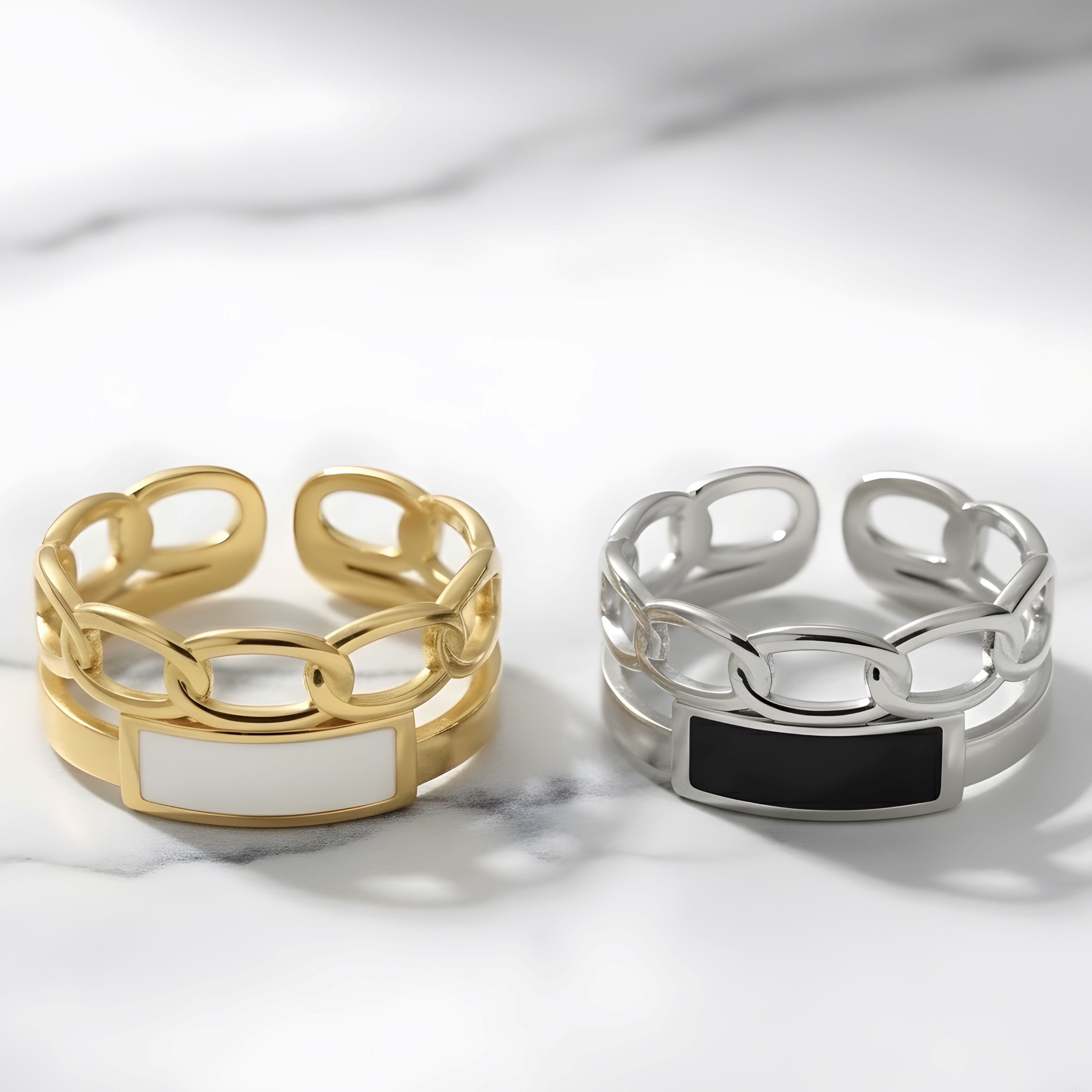 #NOIRBLANC #チェーンリング #スクエアプレートリング #プレートリング #オープンリング #ステンレスリング #サージカルステンレス316L #ゴールドリング #シルバーリング #エナメルリング #デザインリング #モードアクセサリー #大人アクセサリー #シンプルジュエリー #ギフトにおすすめ #AtelierBEcudes