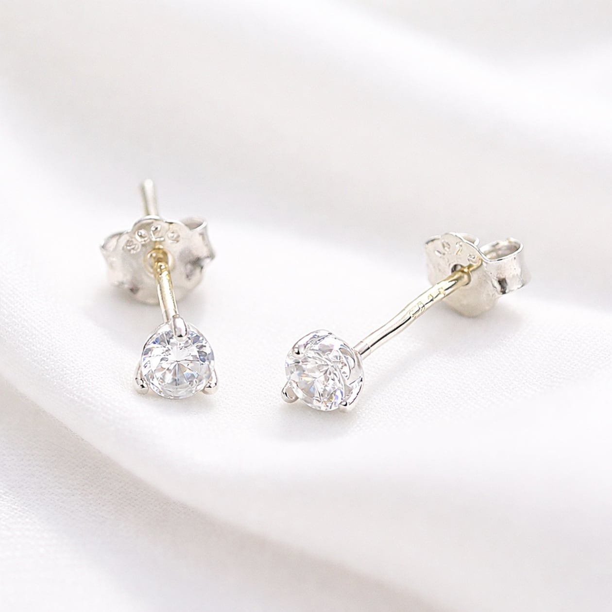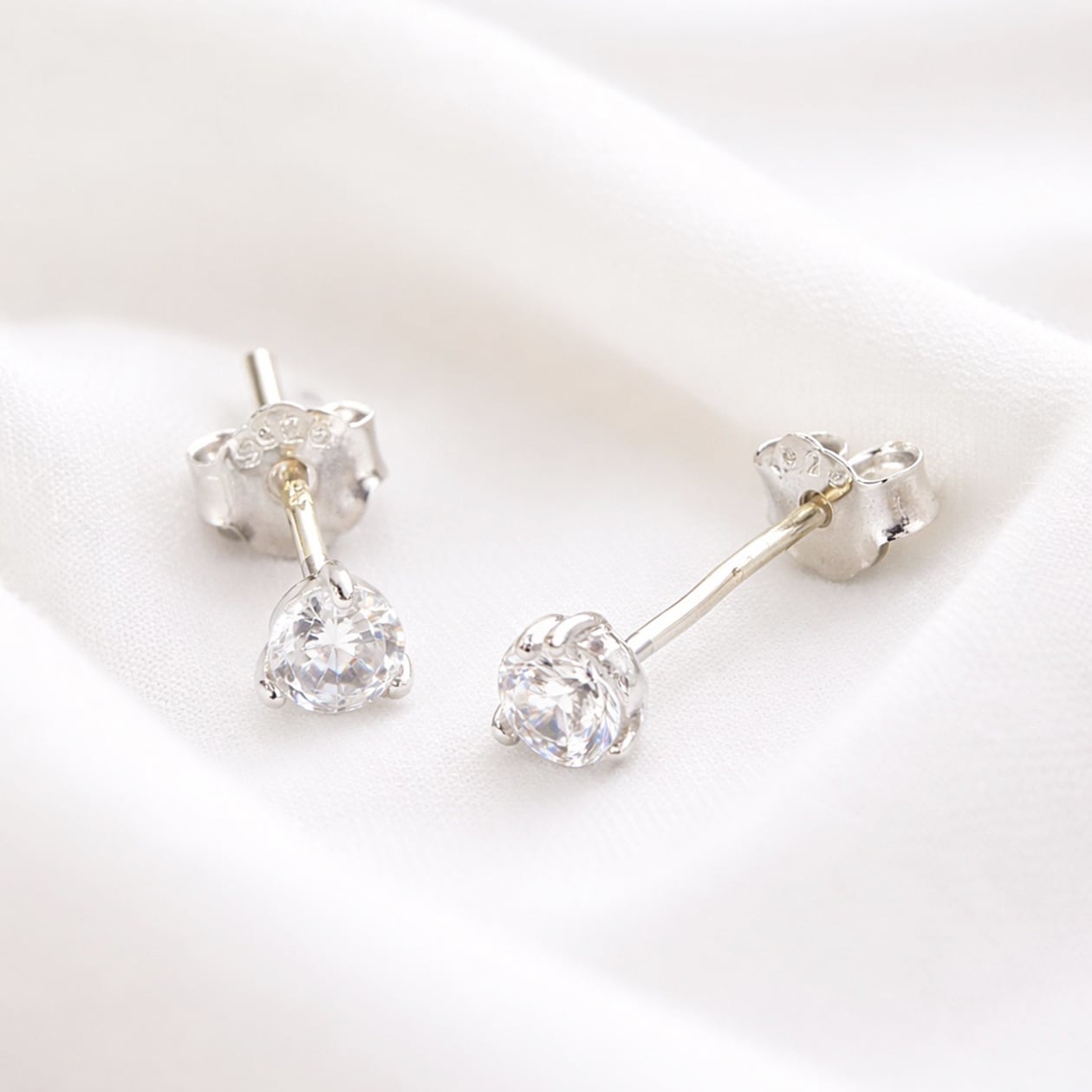 上品な輝きを放つキュービックジルコニアを一粒あしらった、シルバー925製のスタッドピアス。