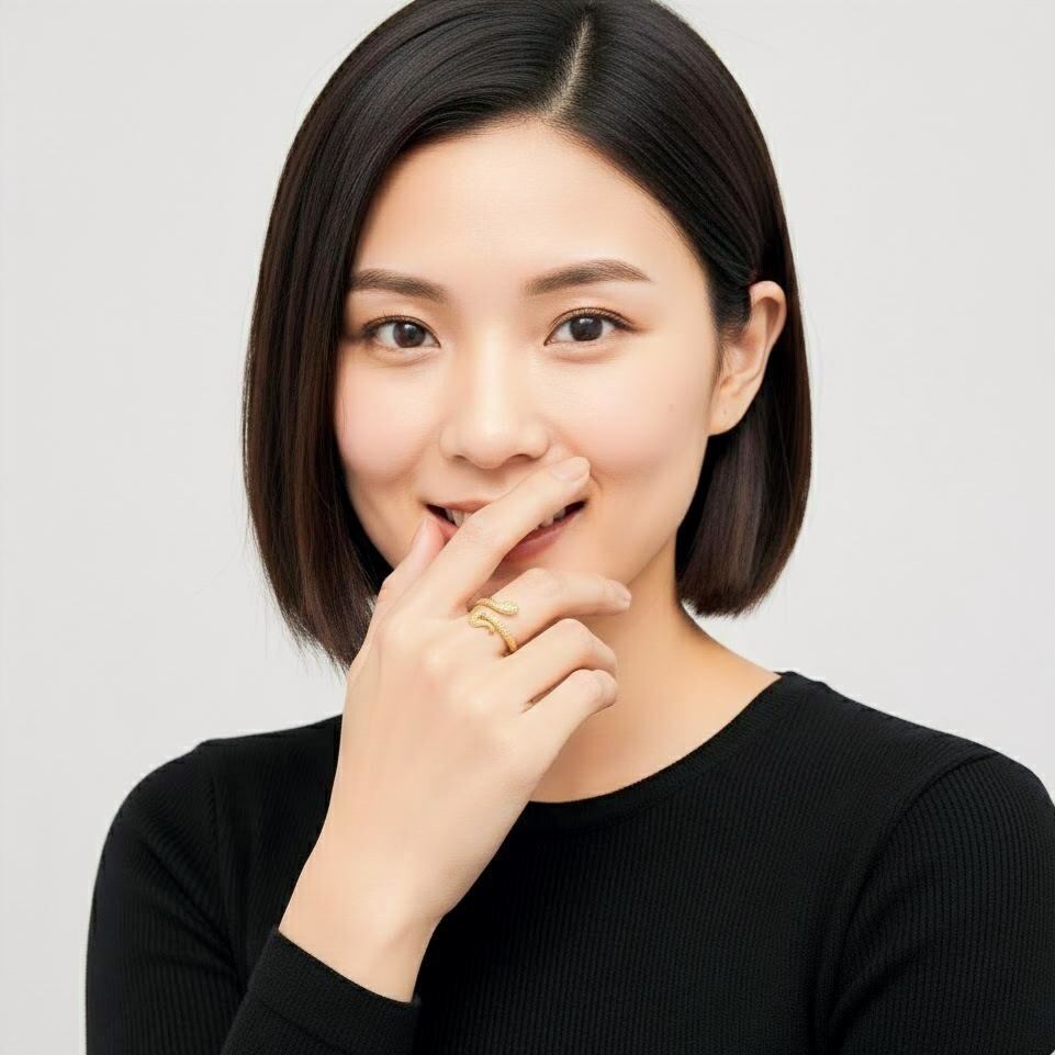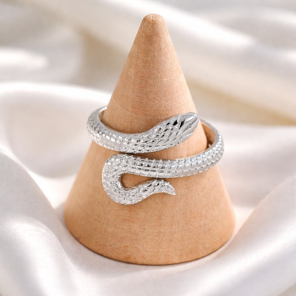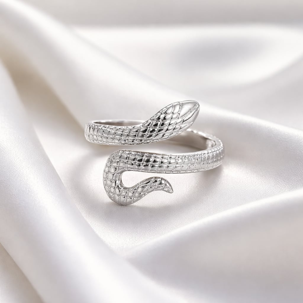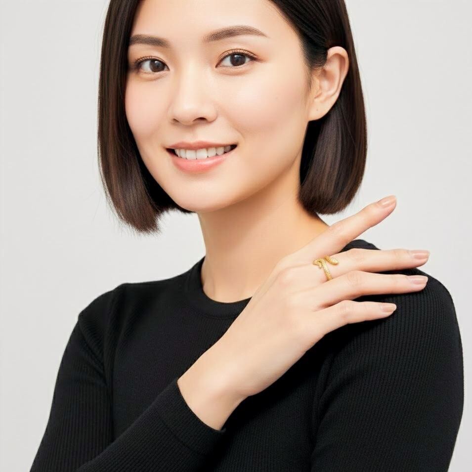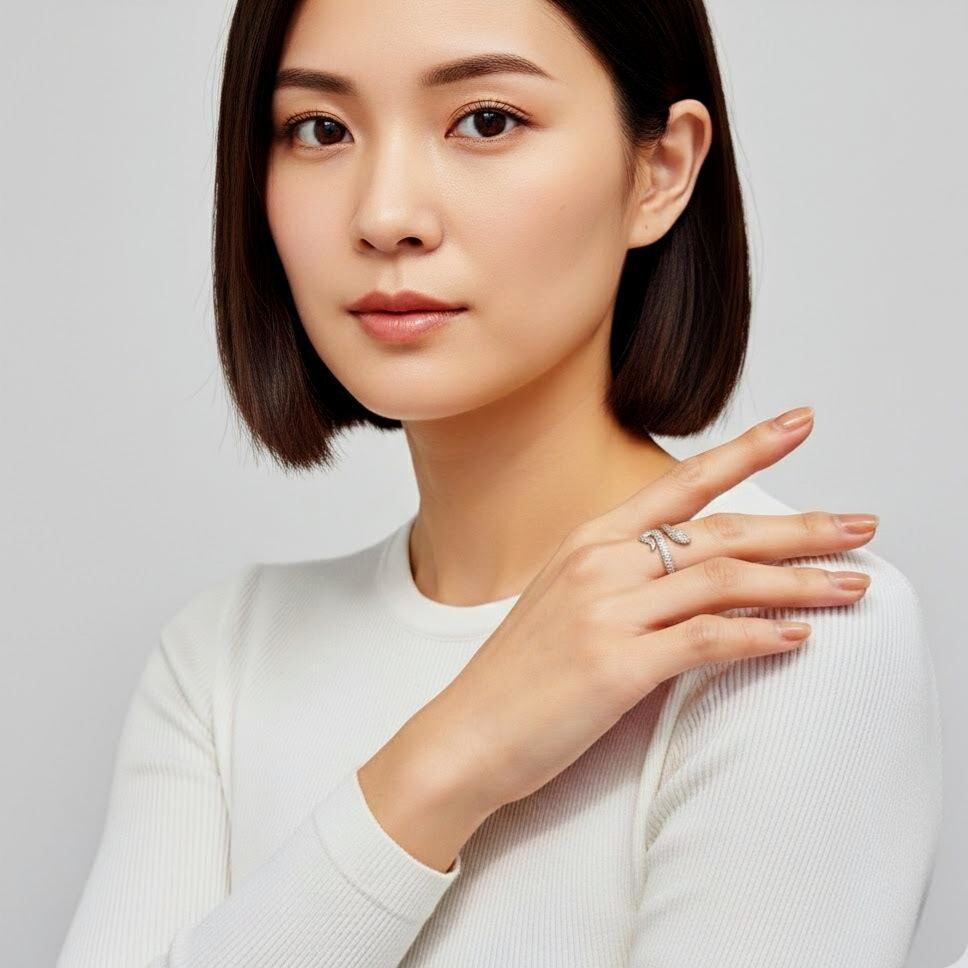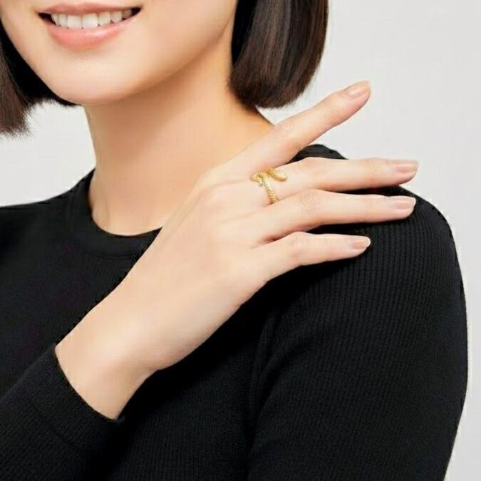 繊細なウロコ模様を立体的に表現した、スネークモチーフのオープンリング。しなやかに指元へと巻き付くようなフォルムが、程よい存在感と洗練されたニュアンスを演出します。リアルすぎないデザインバランスに仕上げることで、モチーフリングでありながら日常のスタイリングにも自然に馴染む一品です。