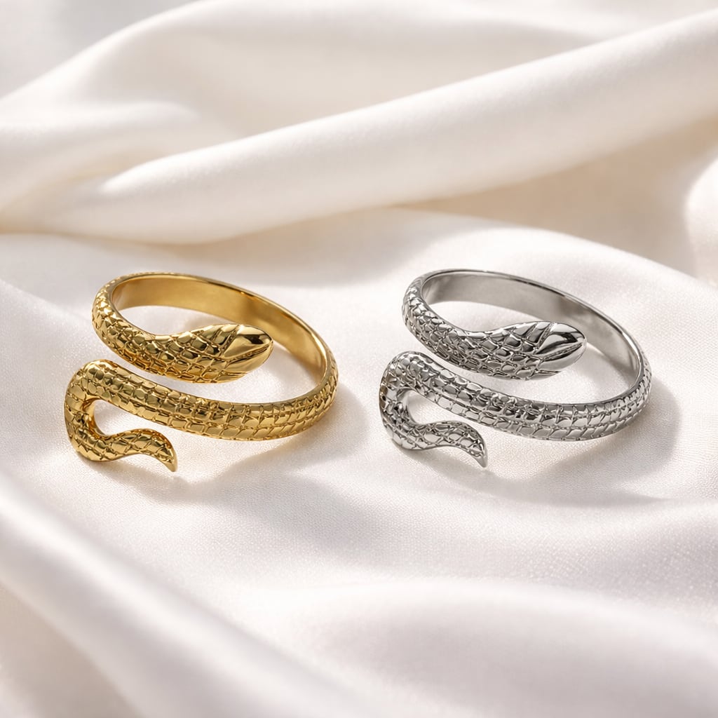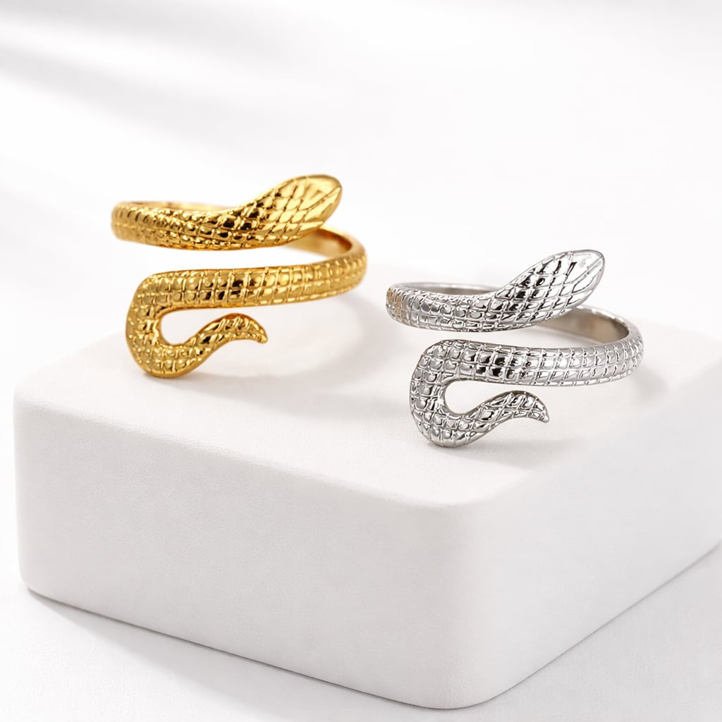 #サージカルステンレス316L #ステンレスリング #スネークリング #蛇モチーフ #オープンリング #ゴールドリング #シルバーリング #モチーフリング #大人アクセサリー #デザインリング #重ね付けリング #ギフトにおすすめ #AtelierBEcudes