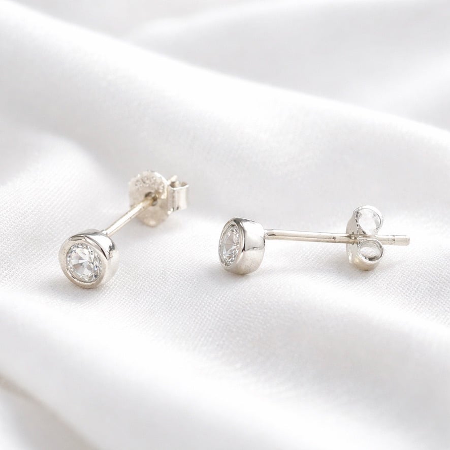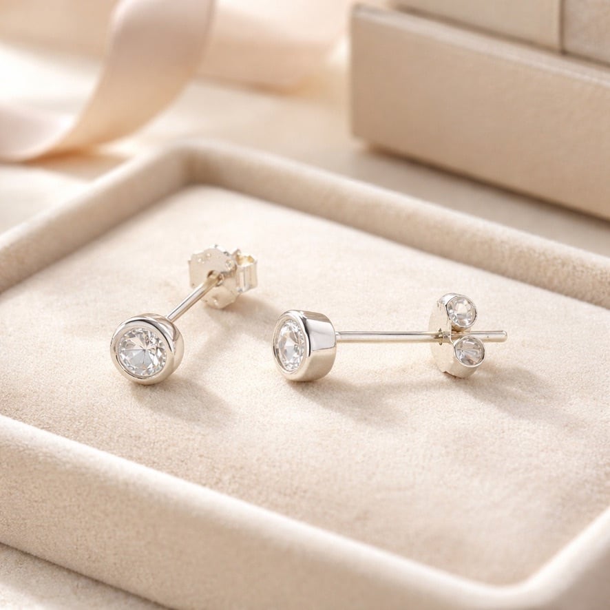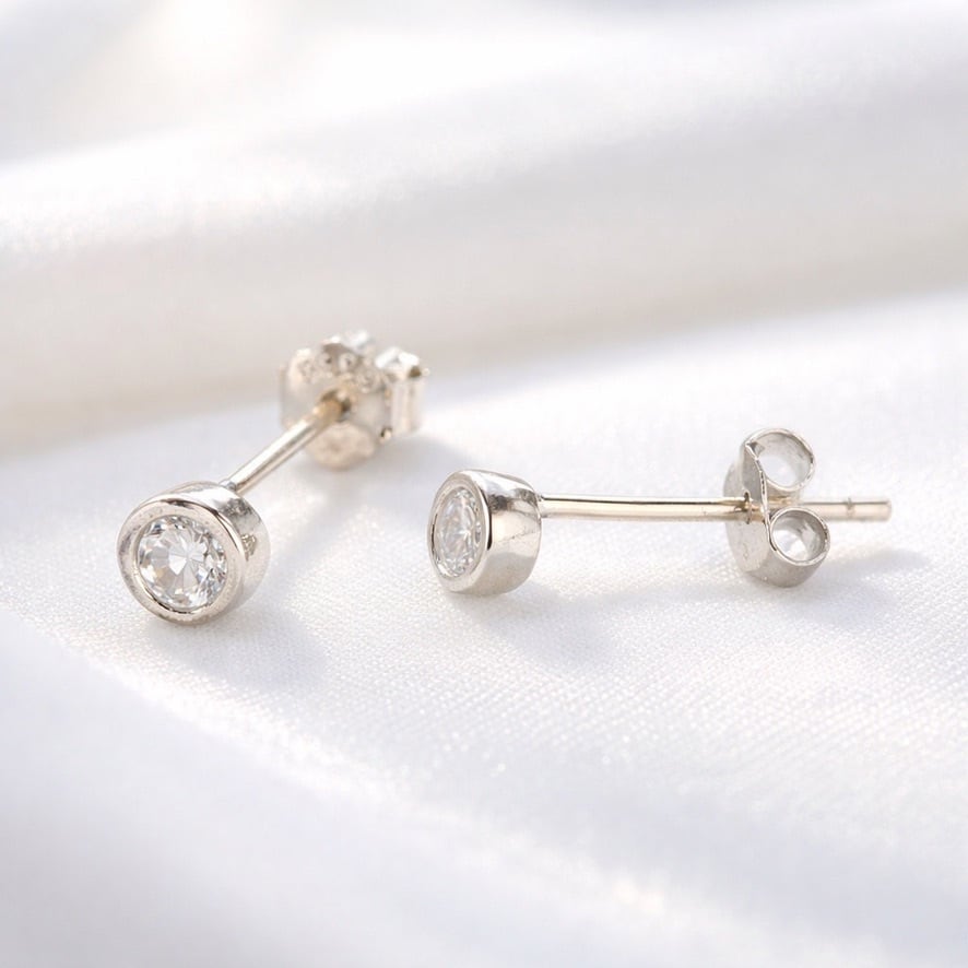 クリアな輝きを放つキュービックジルコニアを、シルバー925のベゼル風デザインにセットしたスタッドピアス。無駄を削ぎ落としたラウンドフォルムが、石の透明感と上品な艶を引き立て、耳元にさりげない華やかさを添えます。小ぶりながらも存在感があり、デイリー使いはもちろん、オフィススタイルやフォーマルな装いにも自然に馴染むデザイン。シンプルで飽きのこない佇まいは、年齢やシーンを問わず長く愛用いただけます。ギフトとしても選びやすい、上質感のある一品です。