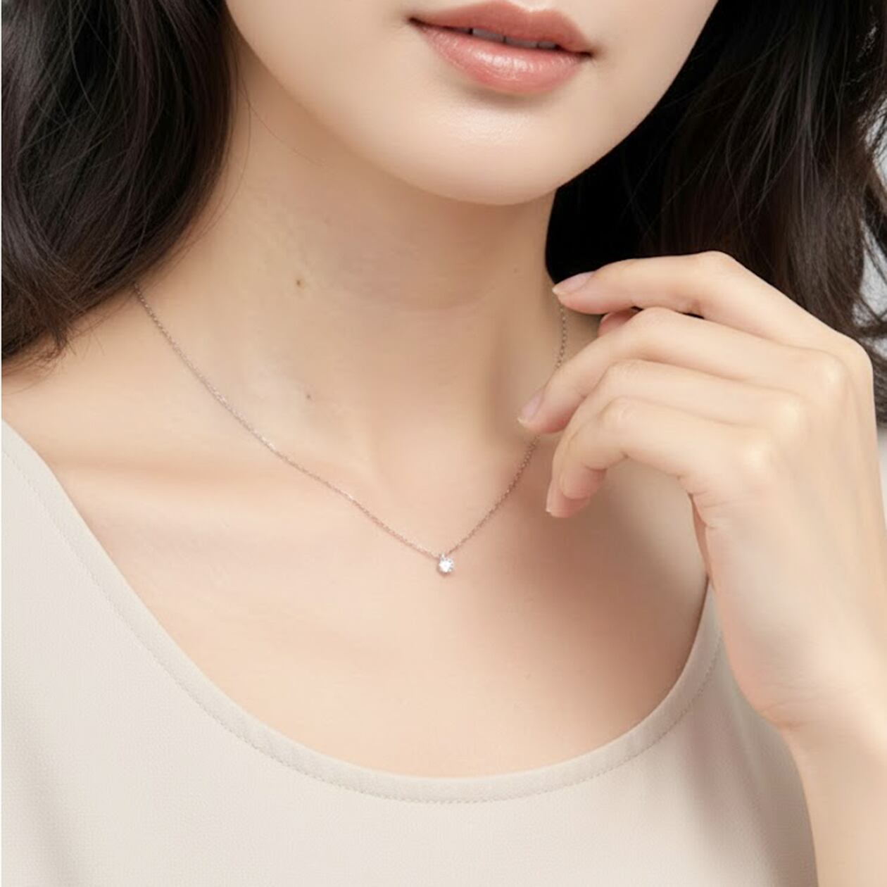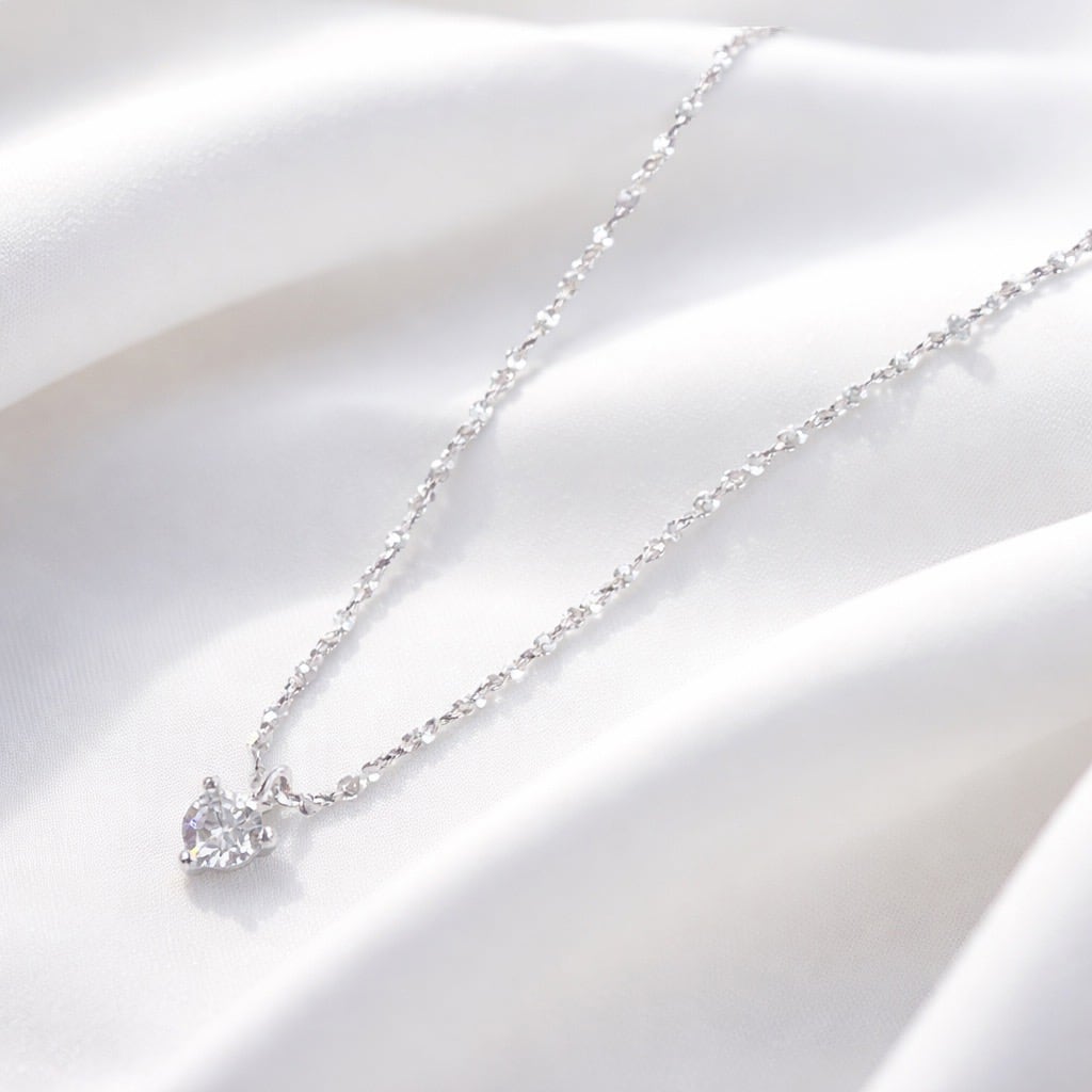 透明感のある一粒キュービックジルコニアを主役にした、シンプルで洗練されたシルバー925製ネックレス。小ぶりながらも美しい輝きを放つストーンが、胸元に上品なアクセントを添えます。