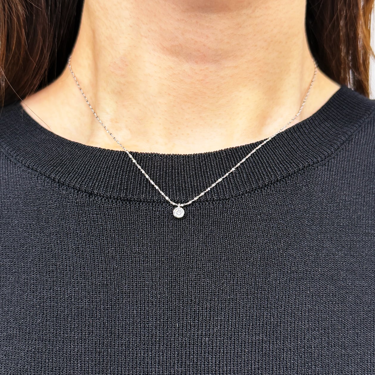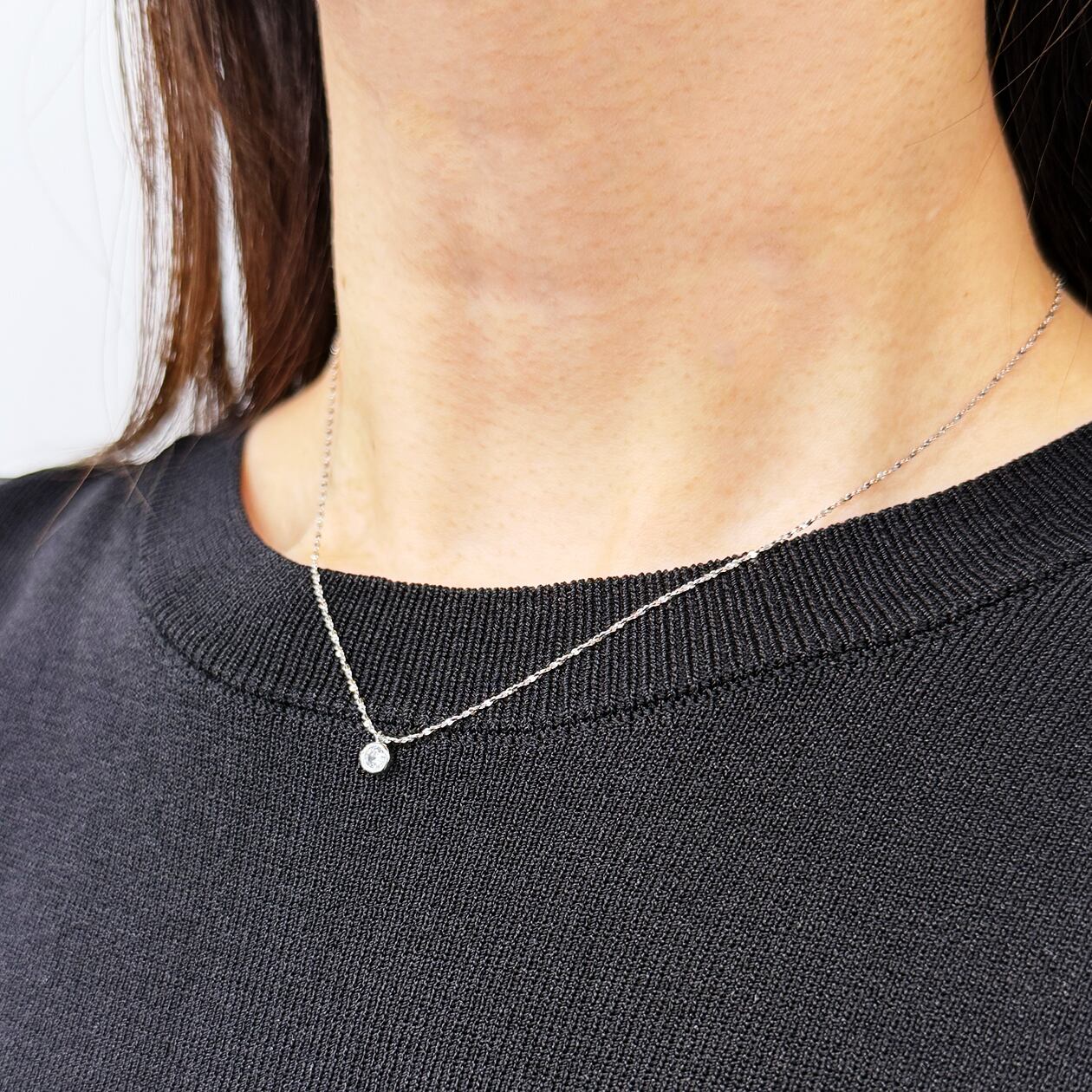 透明感のある一粒キュービックジルコニアを主役にした、シンプルで洗練されたシルバー925製ネックレス。小ぶりながらも美しい輝きを放つストーンが、胸元に上品なアクセントを添えます。