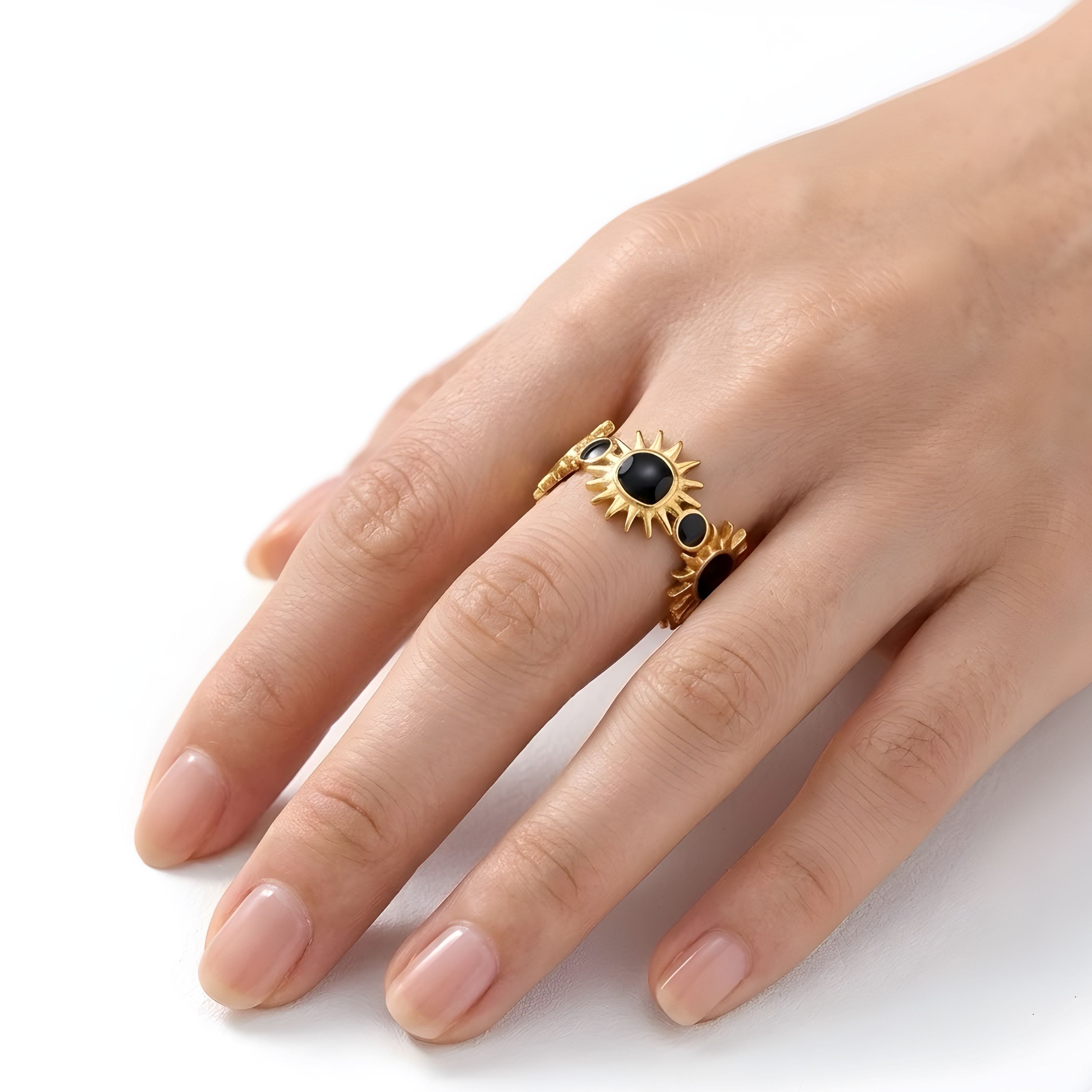 #NOIRBLANC #サージカルステンレス316L #ステンレスリング #オープンリング #サンモチーフ #太陽モチーフ #ゴールドリング #フリーサイズリング #モードアクセサリー #大人アクセサリー #ギフトにおすすめ #AtelierBEcudes