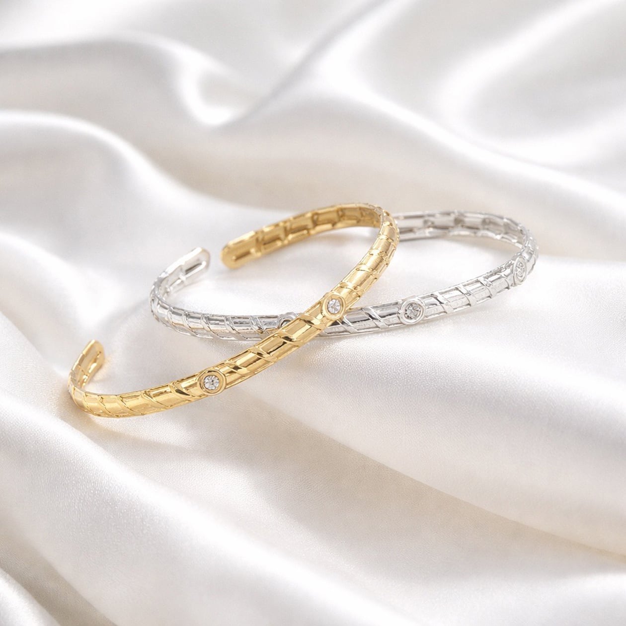 #サージカルステンレス316L #ステンレスバングル #キュービックジルコニア #ツイストバングル #ゴールドバングル #シルバーバングル #シンプルアクセサリー #大人アクセサリー #ユニセックスアクセサリー #AtelierBEcudes