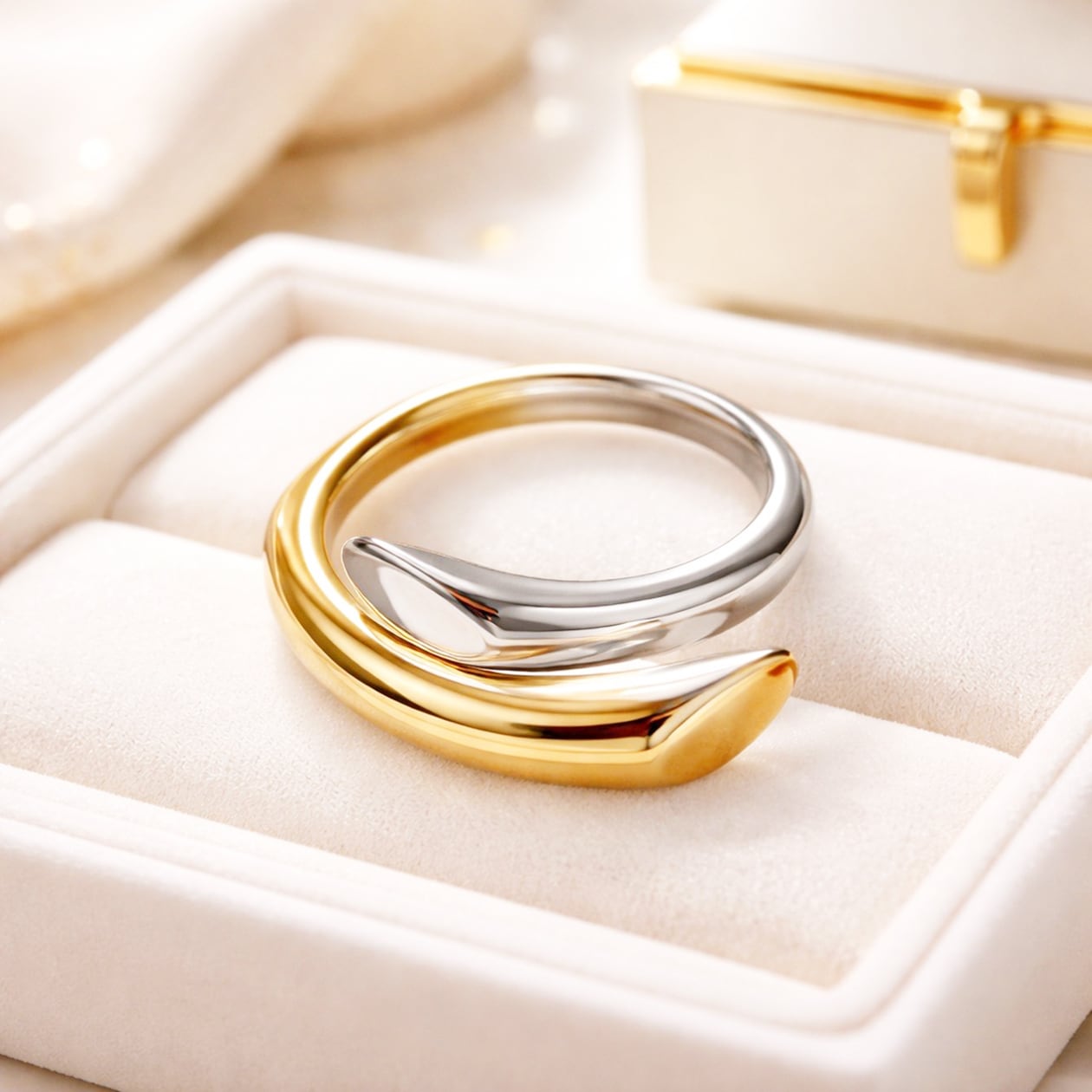 #サージカルステンレス316L #バイカラーリング #オープンリング #ニュアンスリング #ゴールドシルバー #ステンレスリング #FUSIONシリーズ #シンプルリング #ユニセックスアクセサリー #デイリーリング #AtelierBEcudes