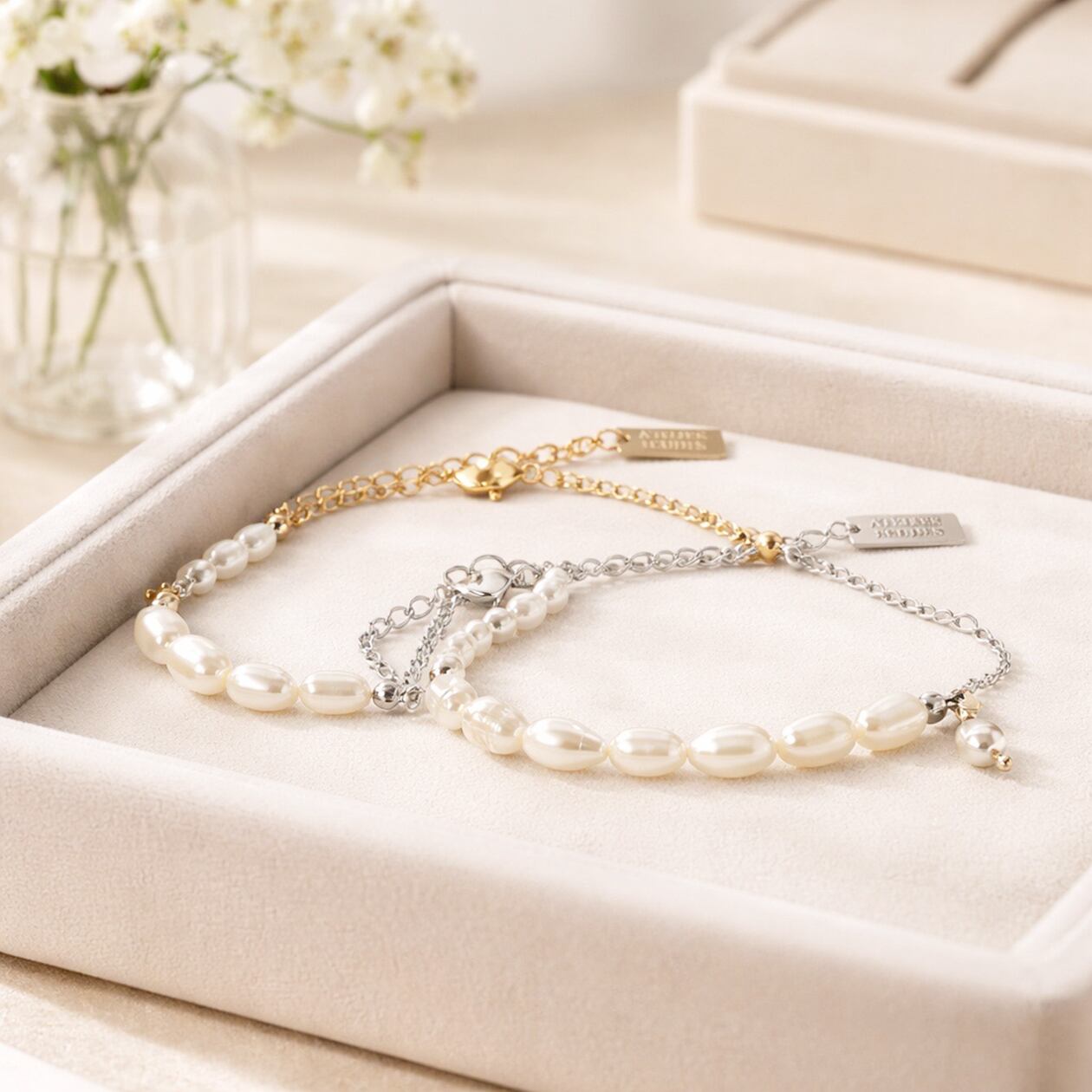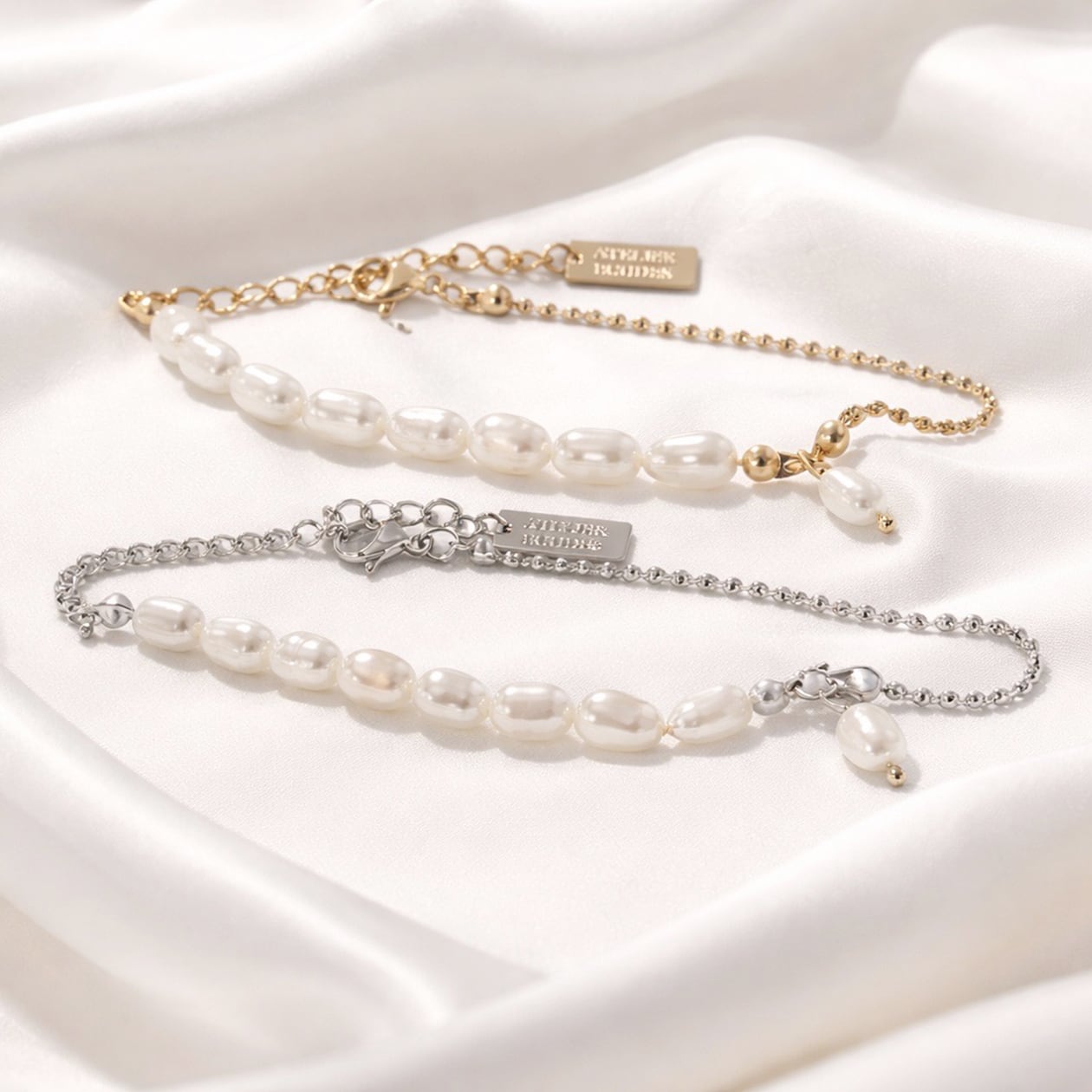 #サージカルステンレス316L製 #ステンレスブレスレット #淡水パール #パールブレスレット #華奢アクセサリー #ゴールドブレスレット #大人アクセサリー #重ね付け #AtelierBEcudes
