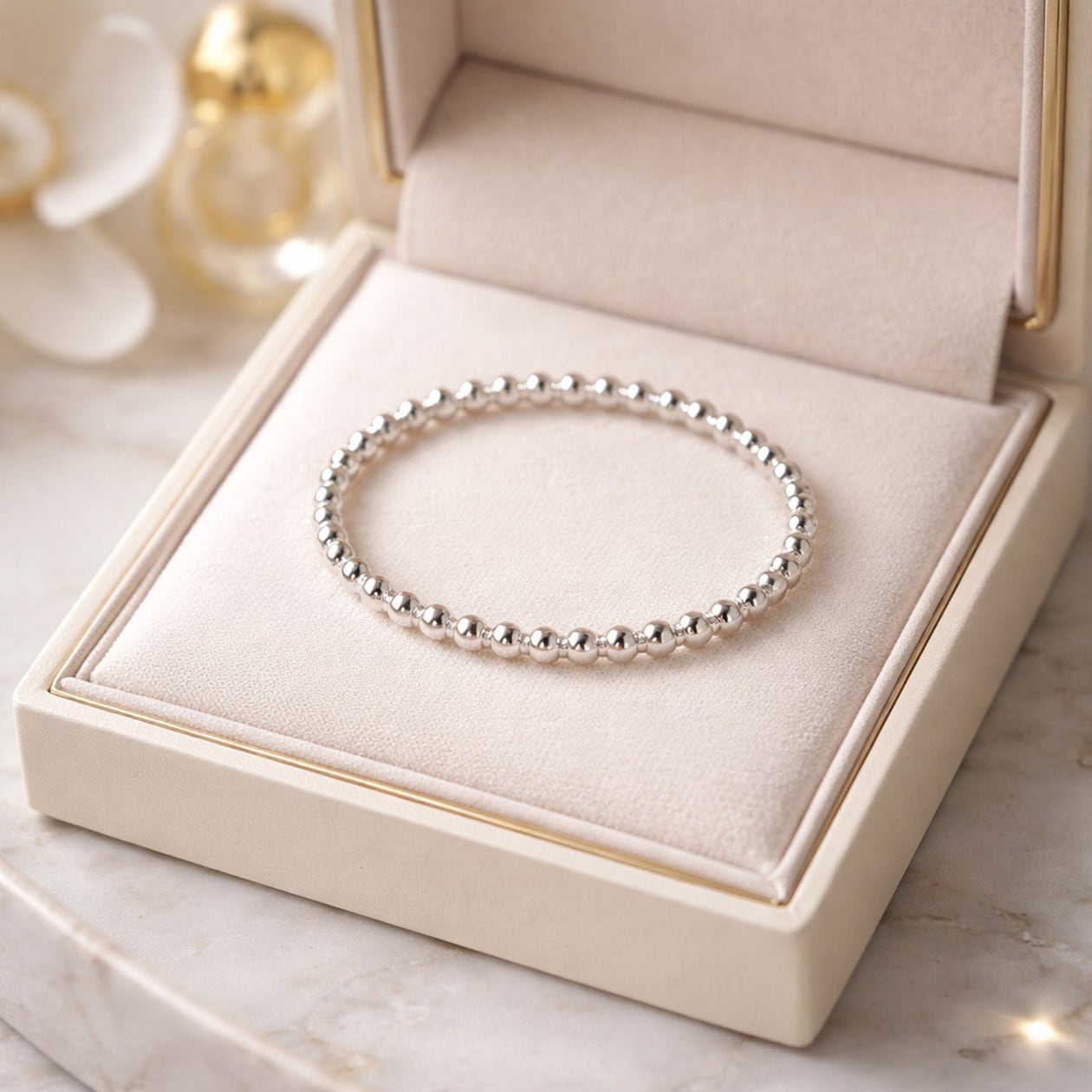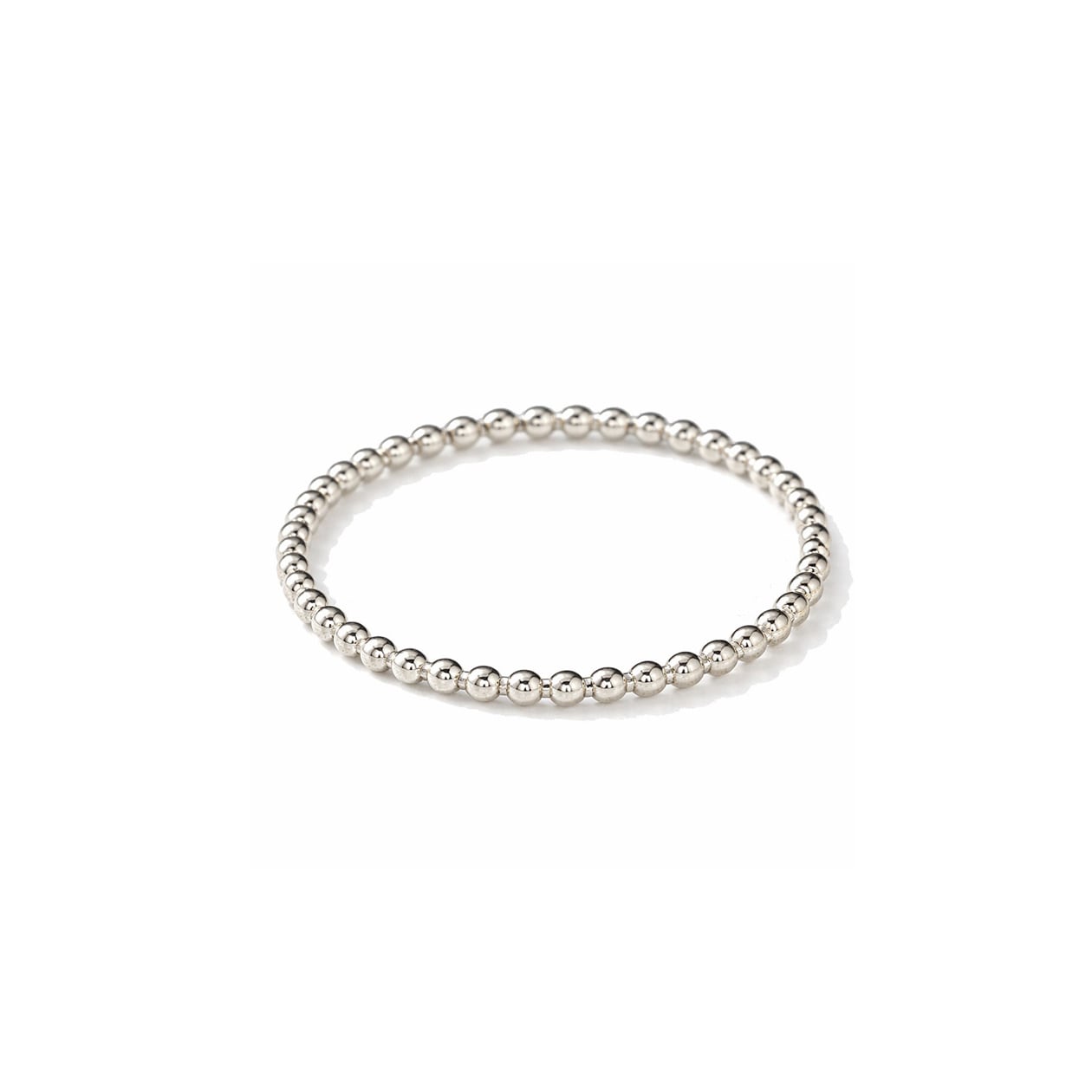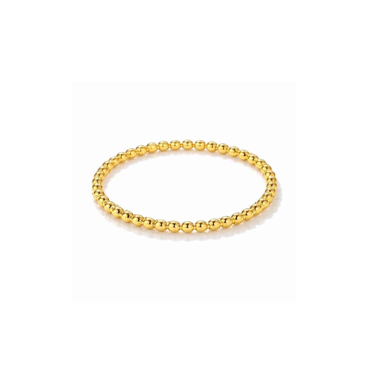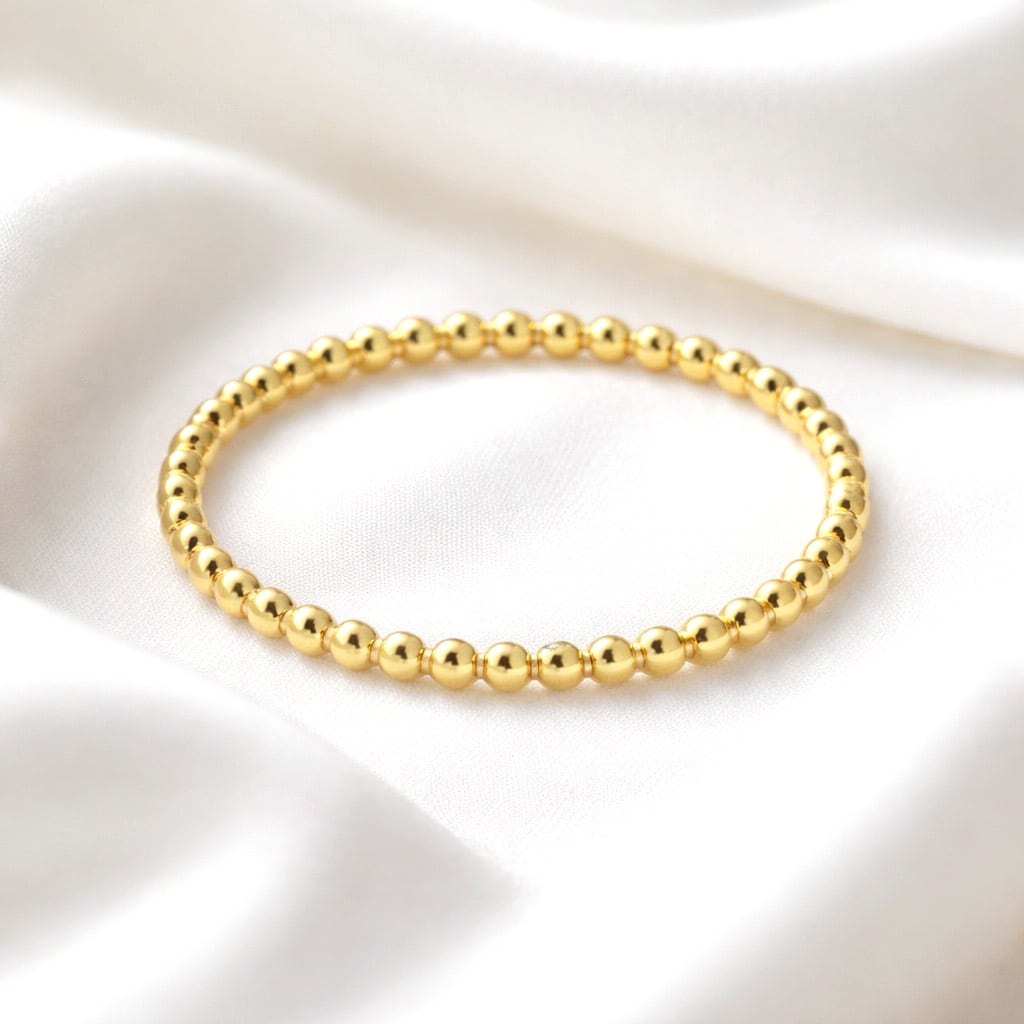 小さなボールを連ねた、繊細で上品なデザインリング。ミニマルながらも光を受けてさりげなく輝き、指先をすっきりと美しく見せてくれます。