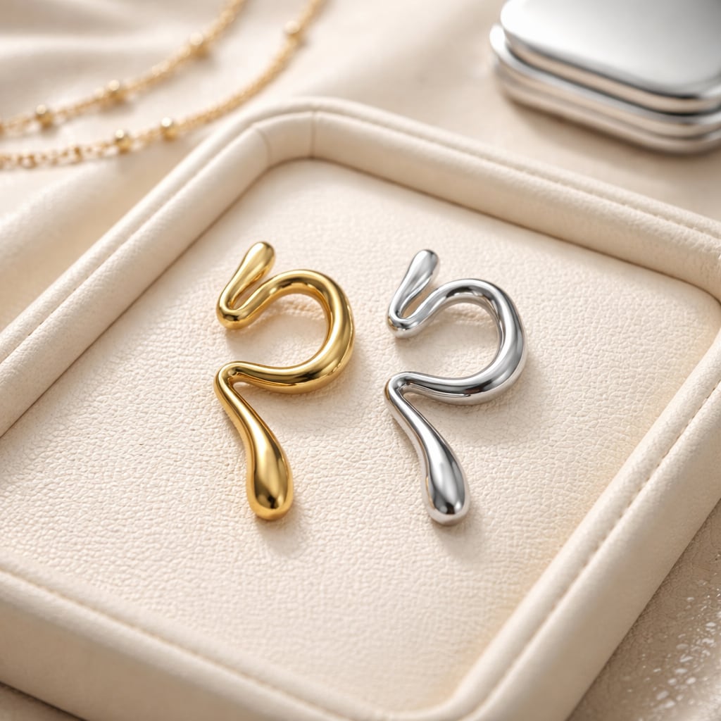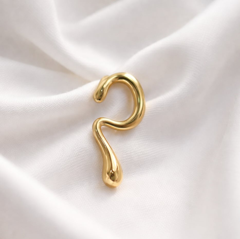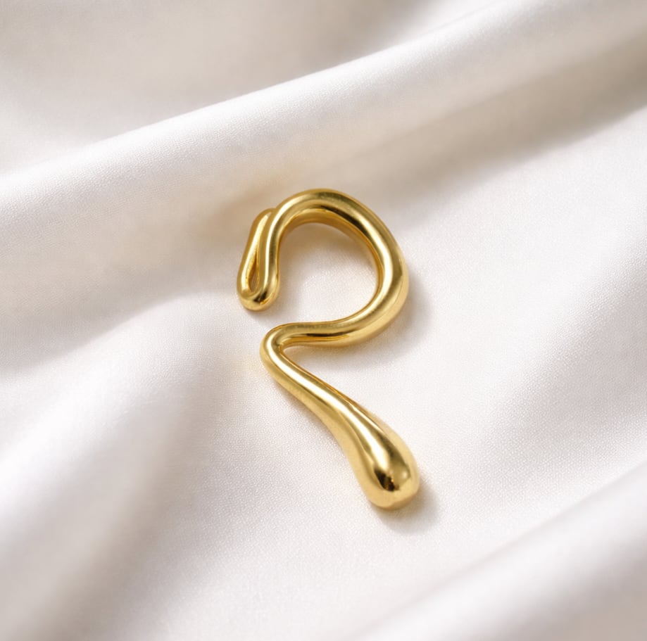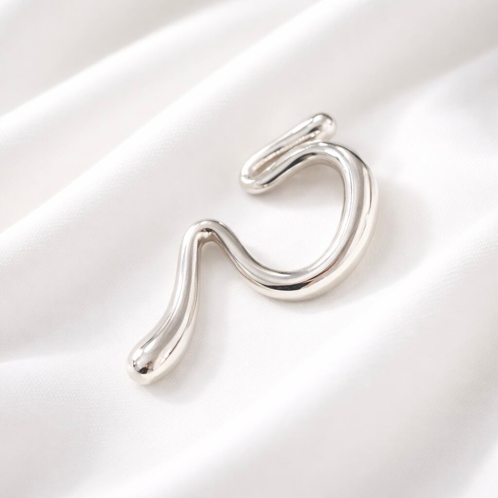 流れるような曲線が美しいニュアンスラインイヤーカフ。立体的でやわらかなフォルムが耳元に自然にフィットし、シンプルながらも洗練された存在感を演出します。右耳用デザインで、ひとつ着けるだけでモードな印象に。ゴールドとシルバーの2色展開で、きれいめからカジュアルまで幅広いスタイリングに対応。お手持ちのピアスやイヤーカフとの重ね付けにも相性が良く、コーディネートのアクセントとして活躍します。