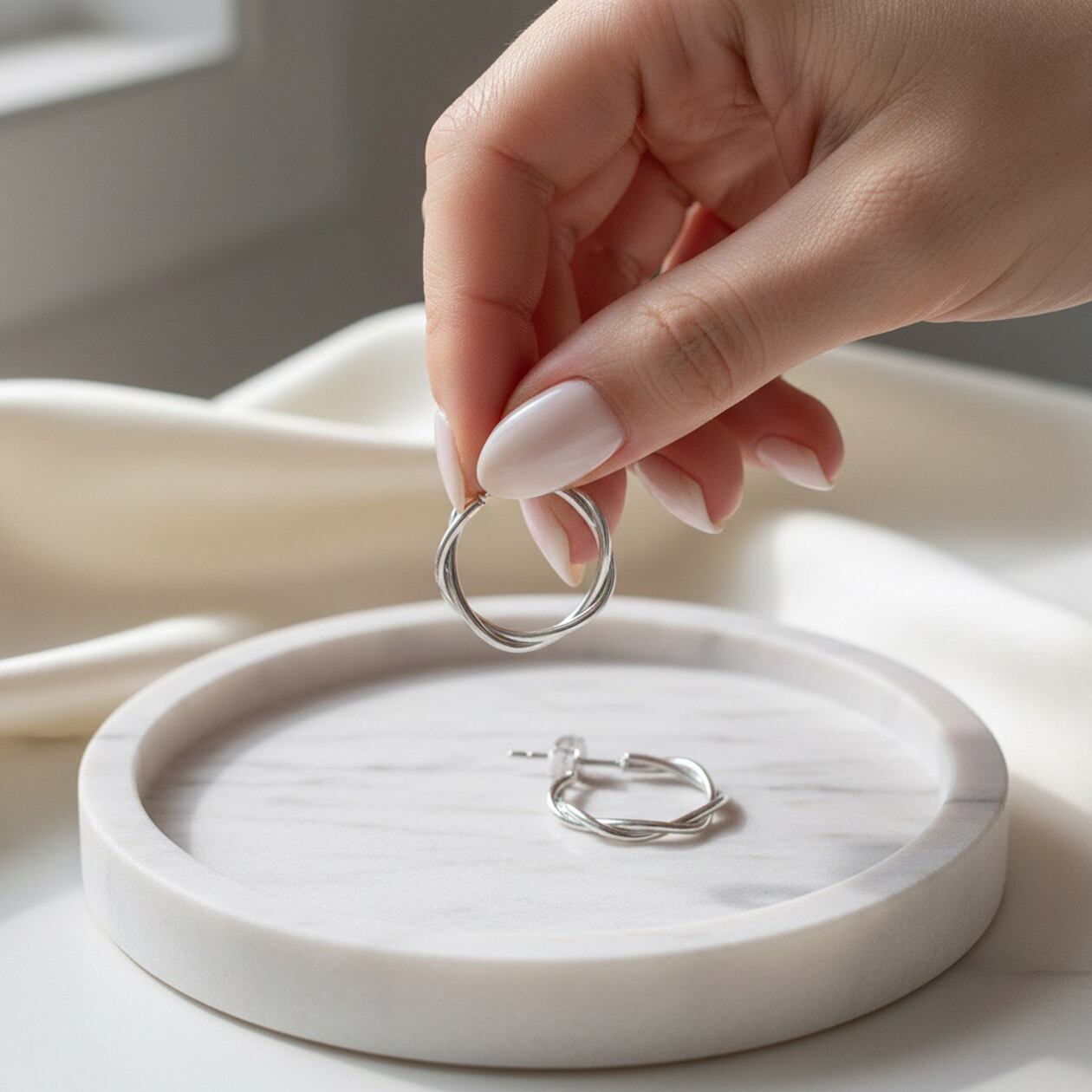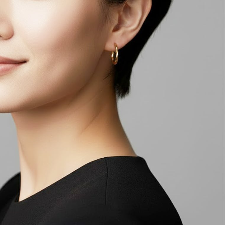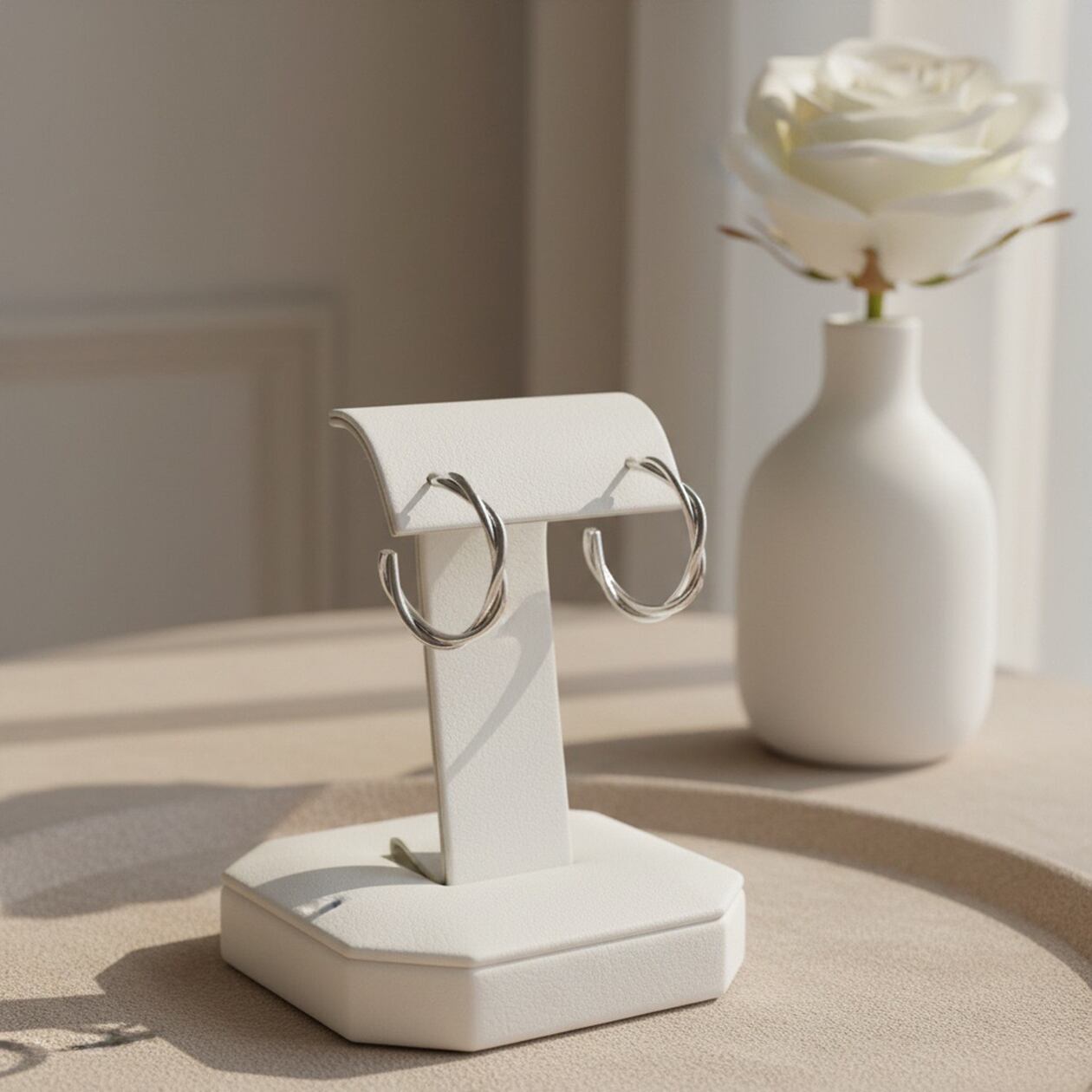 立体的に交差するツイストラインが印象的なフープピアス。シンプルな中に程よい存在感を持たせたデザインで、耳元に上品な立体感と艶をプラスします。小ぶりすぎず大きすぎない絶妙なサイズ感で、デイリーからきれいめスタイルまで幅広く活躍。流れるような曲線が女性らしい柔らかさを演出し、ひとつ着けるだけでコーディネートが洗練された印象に。カジュアル・オフィス・セレモニーシーンにも取り入れやすい万能フープピアスです。