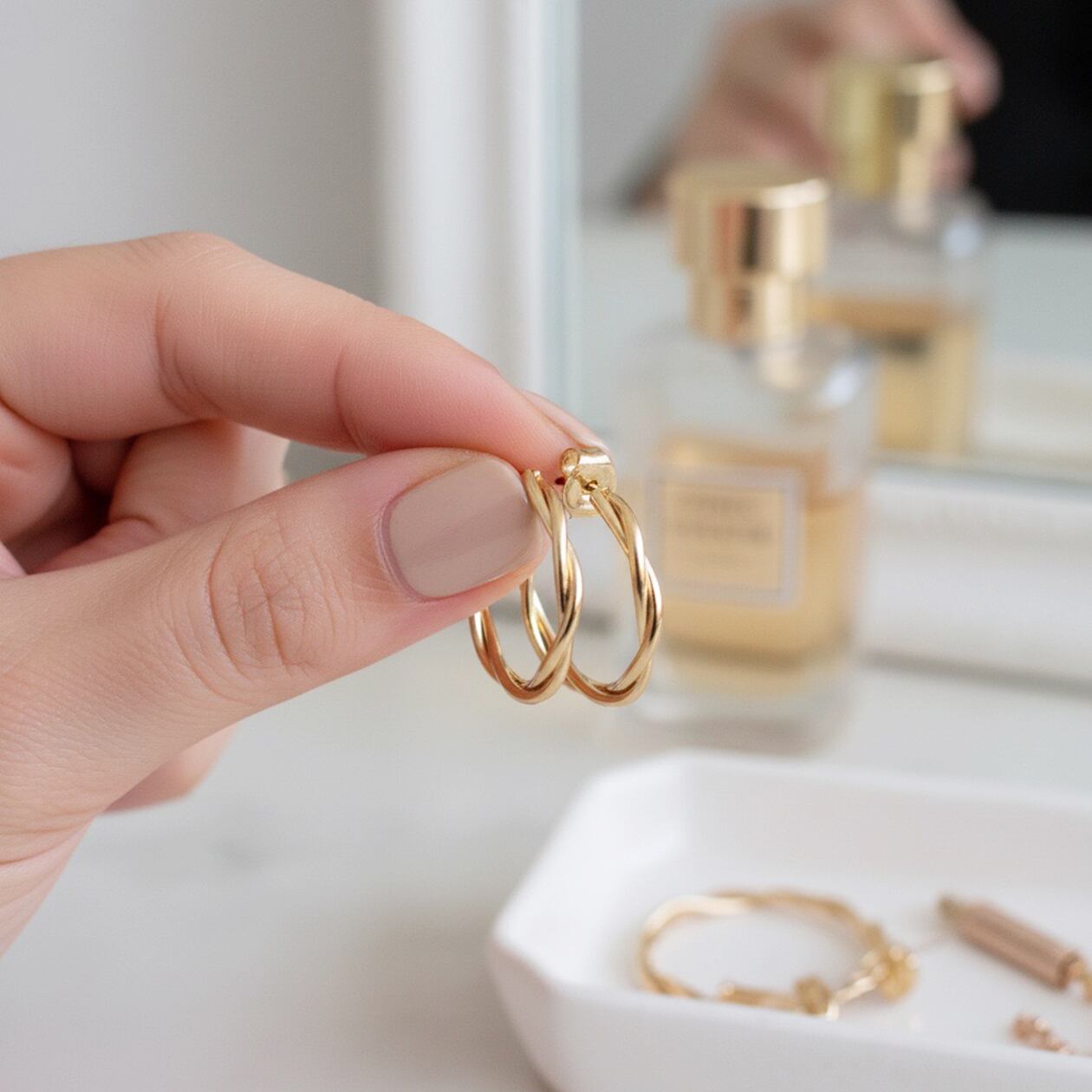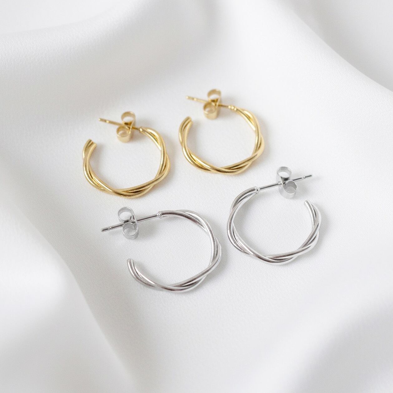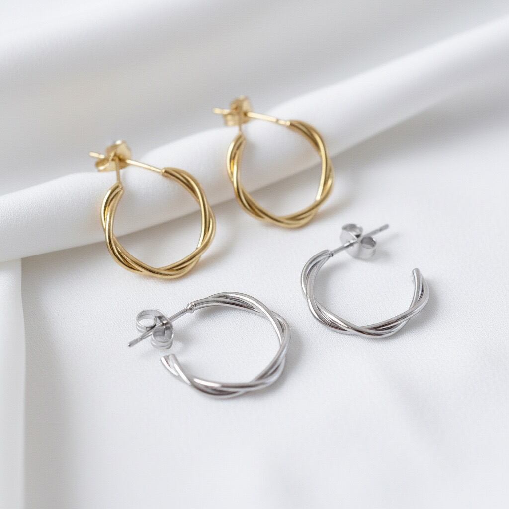 #サージカルステンレス316L #フープピアス #ツイストピアス #ゴールドピアス #金属アレルギー対応 #シンプルピアス #大人アクセサリー #きれいめコーデ #ミニマルアクセサリー #AtelierBEcudes