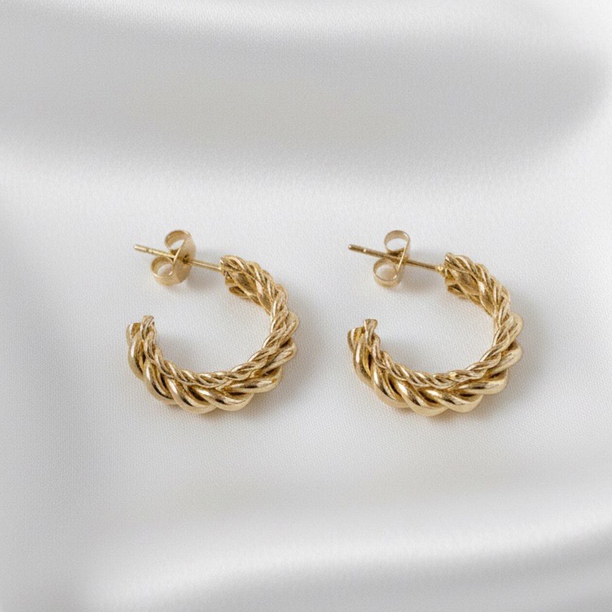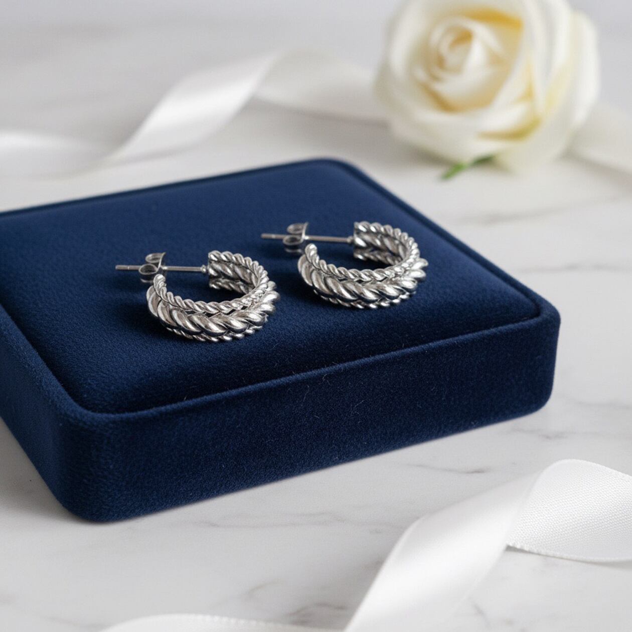 重なり合うチェーンモチーフの立体感が印象的なフープピアス。編み込まれたような奥行きのあるデザインが、耳元に程よい存在感と高級感をプラスします。しっかりとしたボリュームがありながらも、丸みのあるフォルムで女性らしい柔らかさを演出。カジュアルスタイルのアクセントとしてはもちろん、きれいめコーデやオフィスシーンにも馴染む万能デザインです。ひとつ取り入れるだけで、コーディネートをぐっと洗練された印象に仕上げてくれる存在感フープピアスです。
