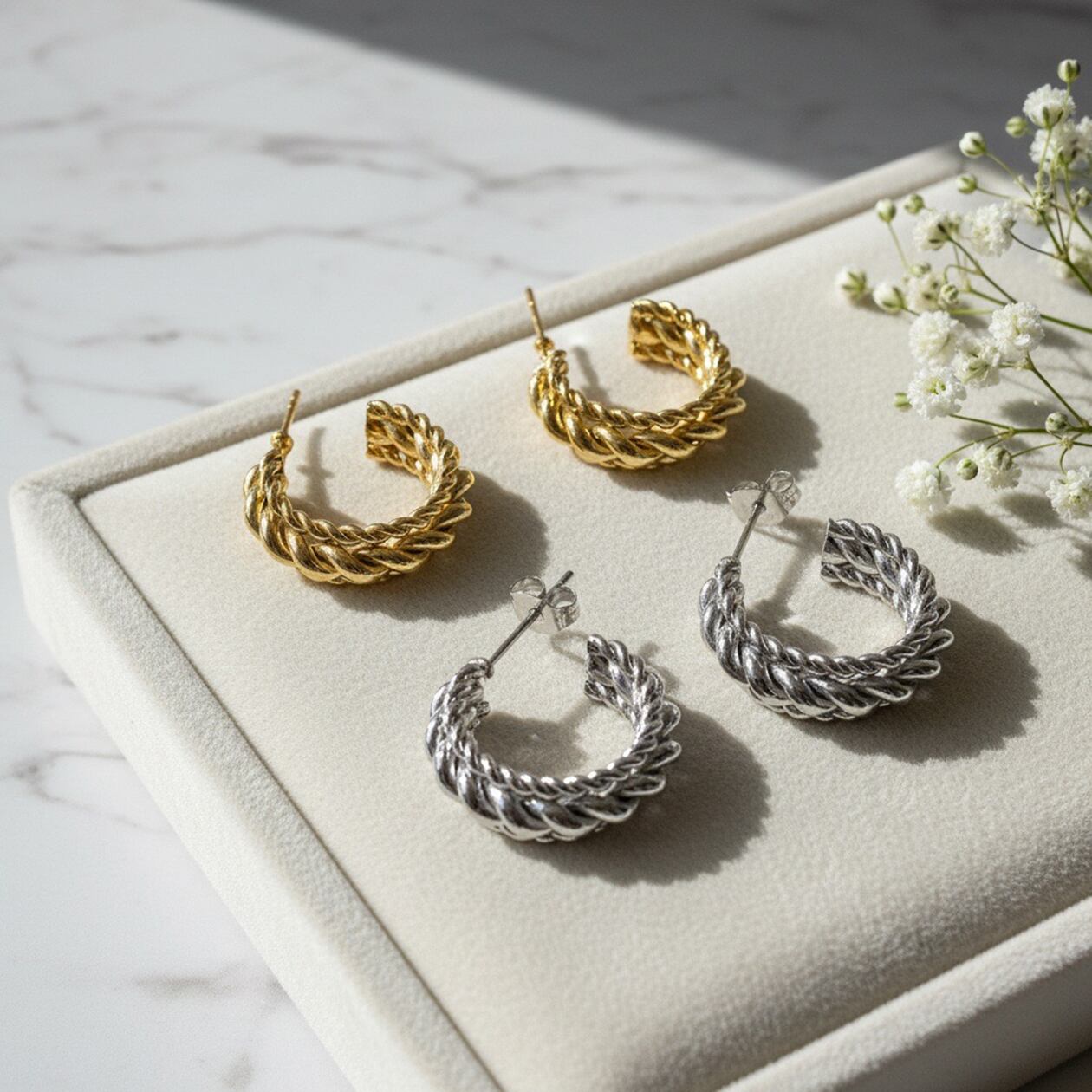 #サージカルステンレス316L #フープピアス #チェーンピアス #ツイストピアス #ボリュームピアス #ゴールドピアス #シルバーピアス #大人アクセサリー #モードアクセサリー #AtelierBEcudes