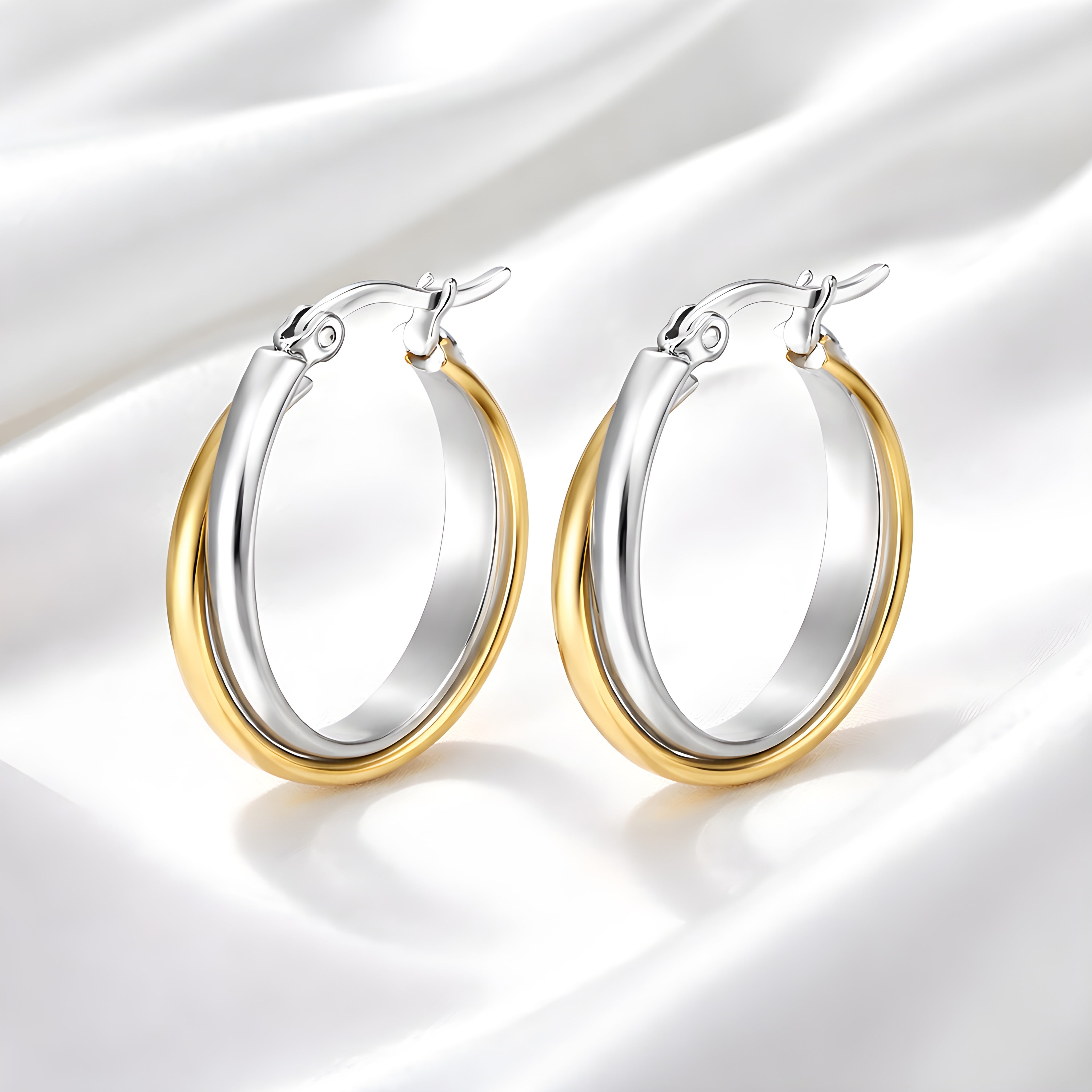 #FUSIONCollection #サージカルステンレス316L #ワンタッチピアス #フープピアス #バイカラーピアス #ゴールドシルバー #ボールドピアス #モードアクセサリー #大人アクセサリー #atelierb.ecudes
