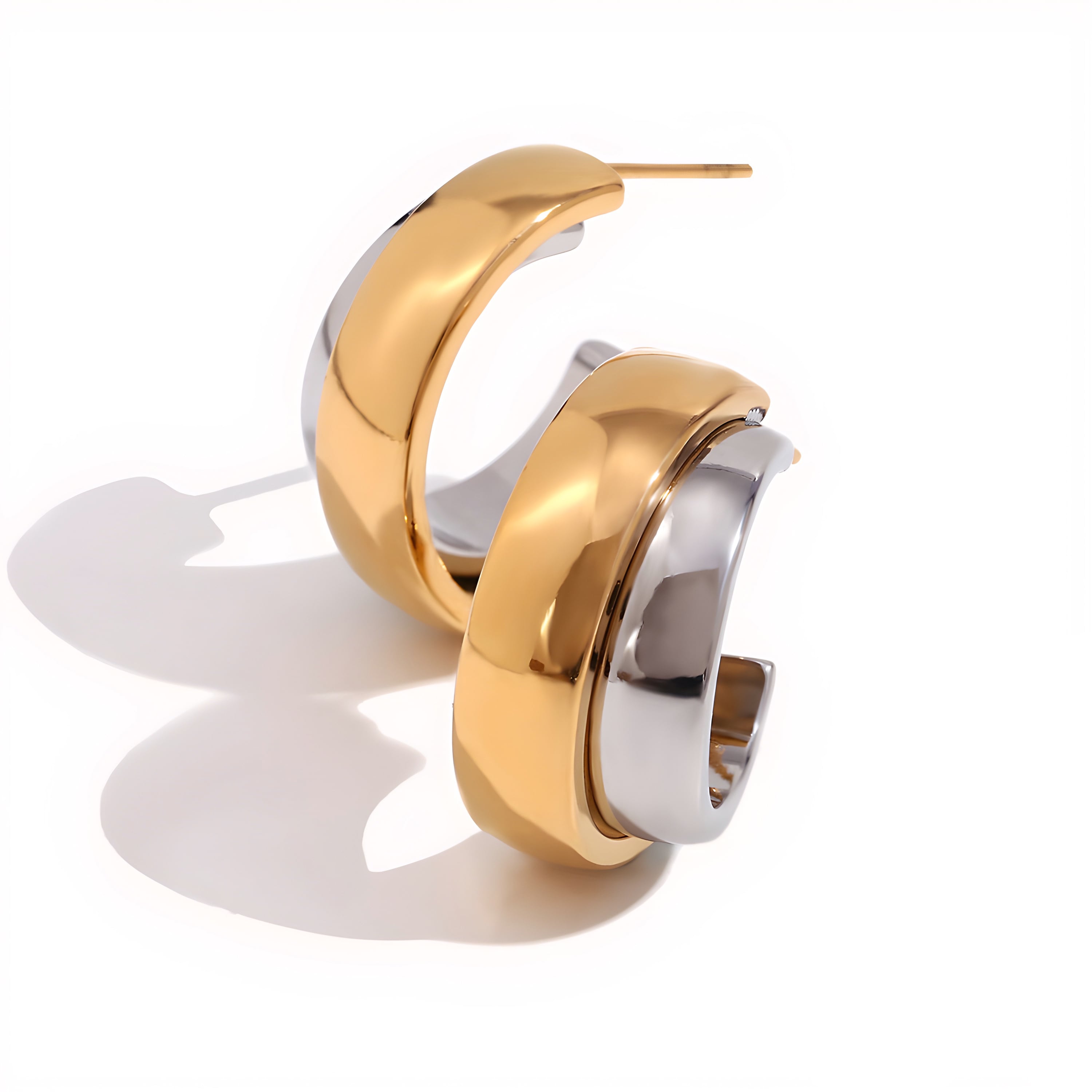 【FUSION】立体バイカラーフープピアス|サージカルステンレス316L ゴールド×シルバー【ste159】
