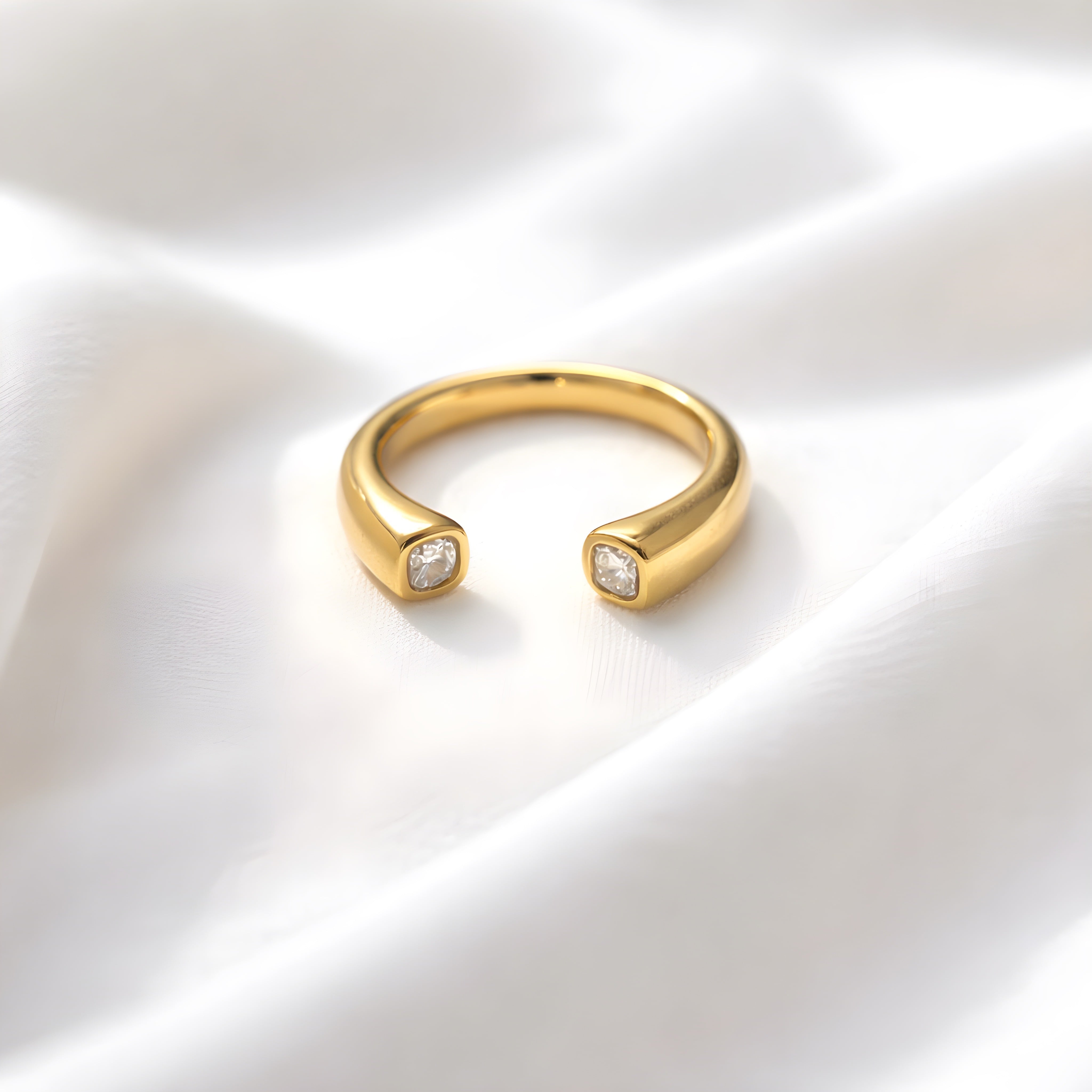 #キュービックジルコニア #オープンリング #サージカルステンレス316L #ステンレスリング #ゴールドリング #両石リング #スクエアストーン #金属アレルギー対応 #ミニマルリング #atelierb.ecudes