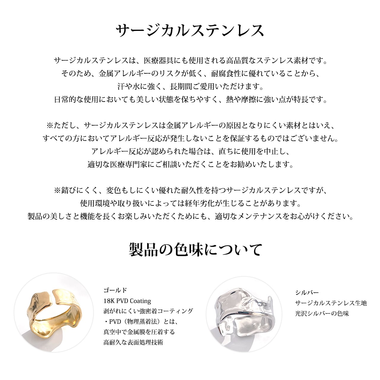 やわらかく丸みを帯びたフォルムが印象的なニュアンスリング。程よいボリューム感のあるデザインが指元に自然な存在感を与え、シンプルながらも洗練された印象に仕上げます。滑らかな曲線が光を受けて美しく輝き、角度によって異なる表情を楽しめるのも魅力。1本でコーディネートのアクセントになるのはもちろん、他のリングとの重ね付けにも相性の良いデザインです。