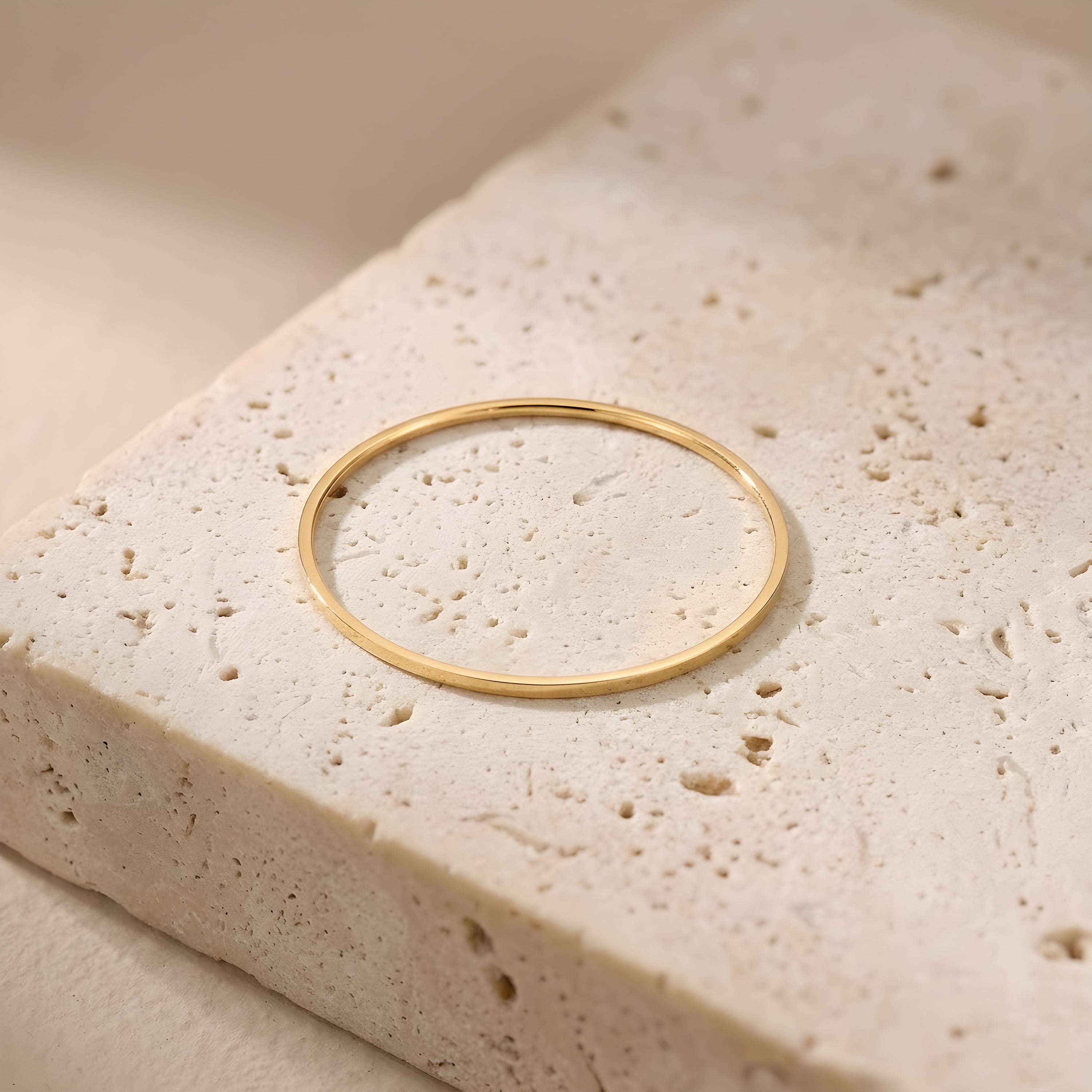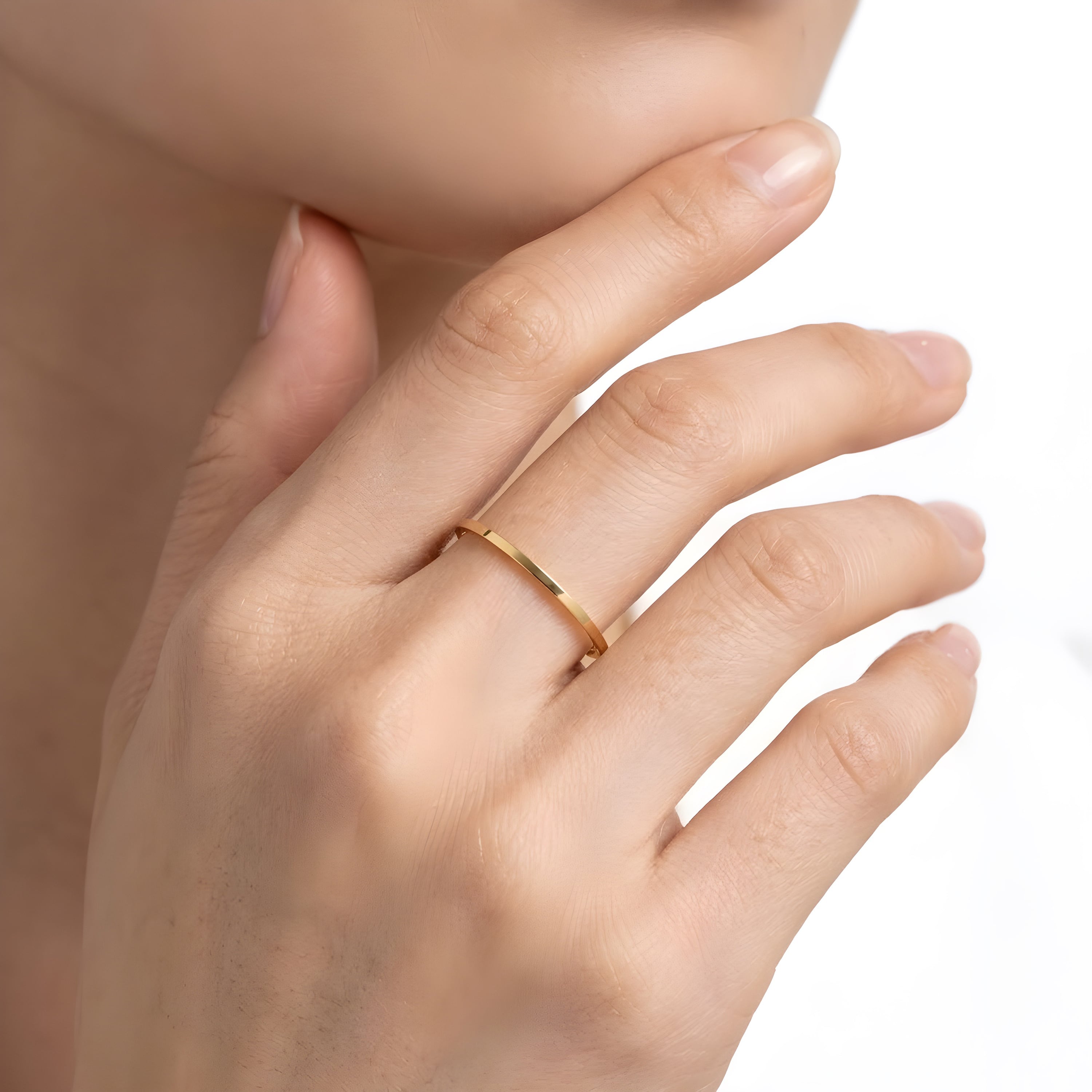 無駄を削ぎ落としたシンプルなラインが魅力のミニマルリング。フラットな表面が上品な輝きを生み、指先に洗練された印象をプラスします。細身ながら程よい存在感があり、単体使いはもちろん重ね付けにも最適。どんなリングとも相性が良く、コーディネートのベースとして活躍します。