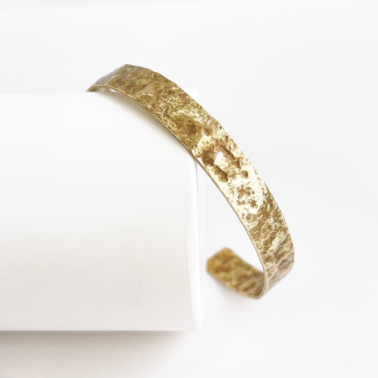 凹凸のある表面加工が印象的な、無垢の真鍮製バングル。