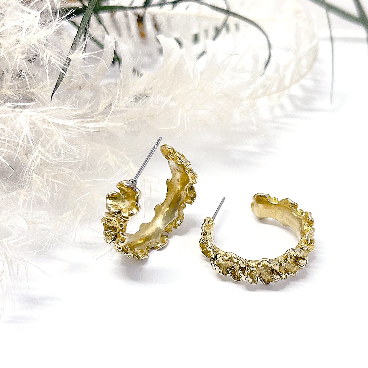 お花モチーフが続く存在感あるフープスタイルのピアスです。耳元と顔まわりを華やかに。お出かけに個性的なアクセサリーとしてご愛用いただけます。