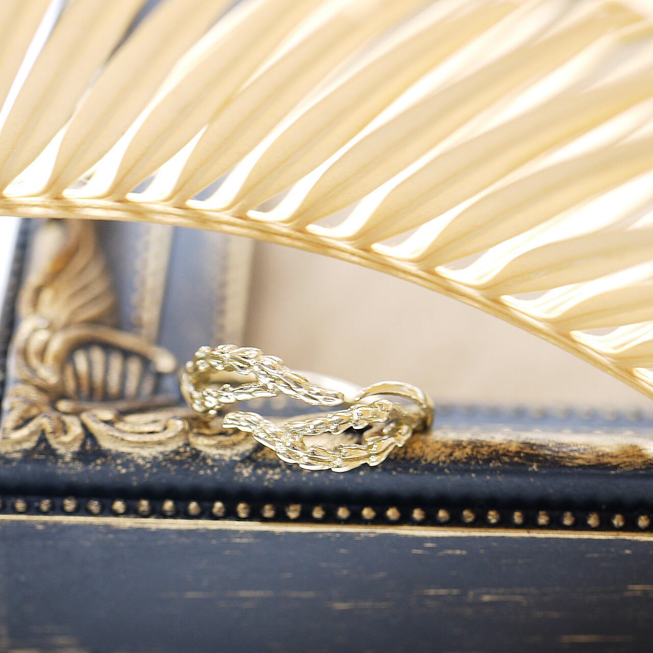 天使の羽をイメージに指を羽根で包むような繊細なデザインのオープンリングです。ディリーからおでかけまでご愛用いただけます。