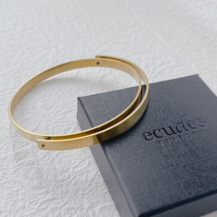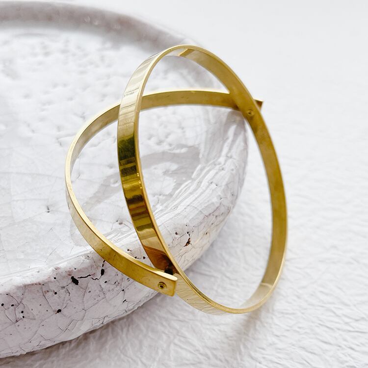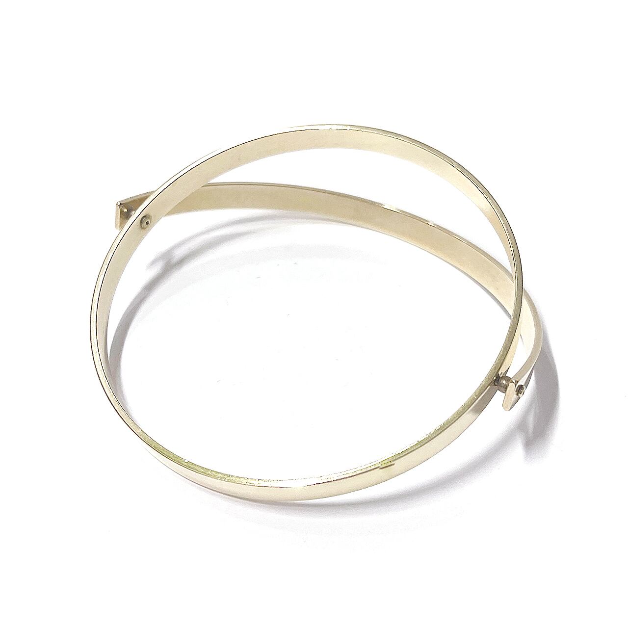 綺麗な表面仕上げが魅力的な円形フレームに動く円形ハーフ円形フレームを追加して単調なシンプル円形フレームをエッジー、おしゃれなバングルに仕上げております。重ねられた円形フレームはずらして着用すると二連バングルに見えます。カジュアルからおしゃれのスタイリング、お出かけ、重ねつけバングルとしてご愛用いただけます。