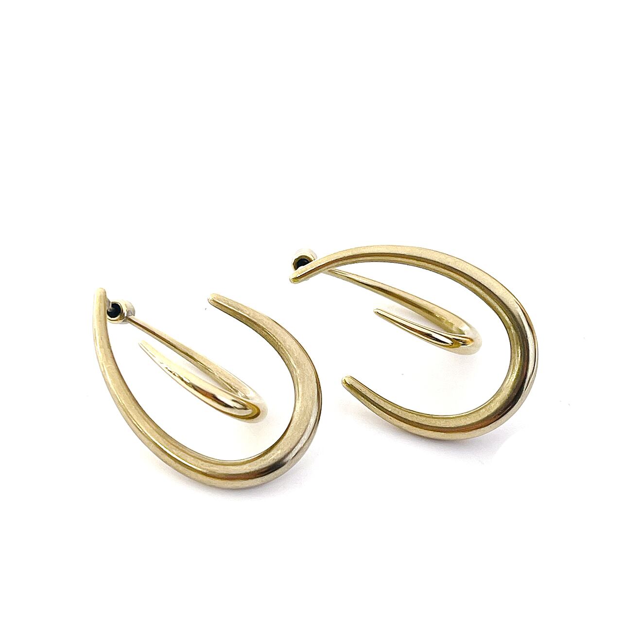 立体的なボリューム感が個性的しずく形デザインのピアスです。ピアスとピアスキャッチをセットでも、他のピアスやピアスキャッチと合わせて別々に使うとおしゃれ度アップ!