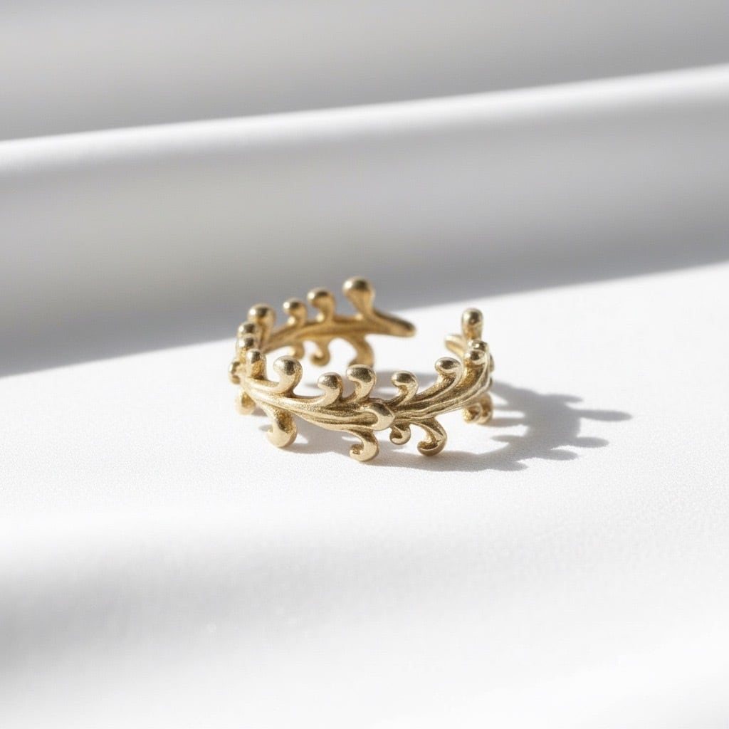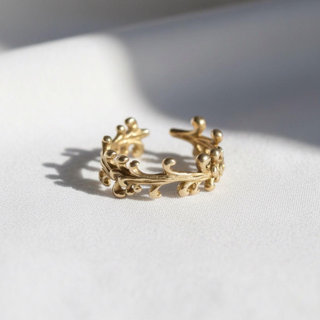 アール・ヌーヴォーの優雅なお花をイメージにオープンリングに再現しております。お花が咲いたような指先を演出。エレガントな印象づけ、ボリューム感あるデザインが魅力。