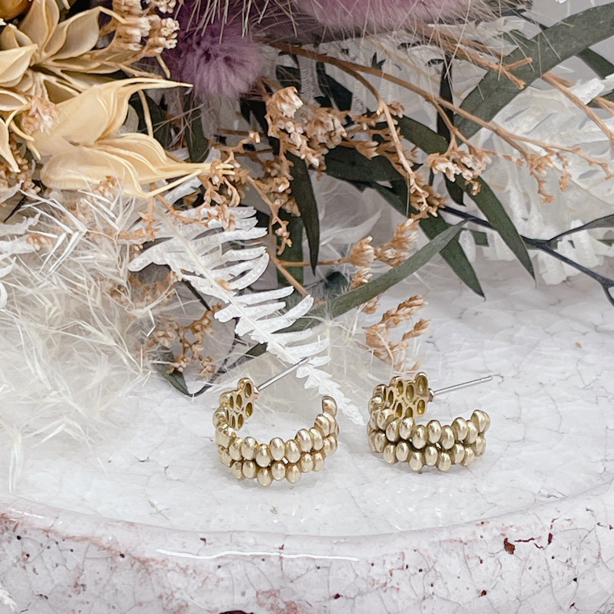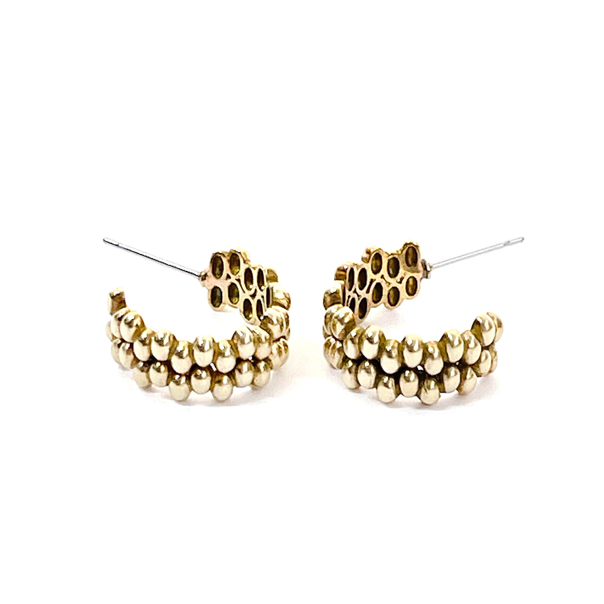 小粒のしずく形の水玉のような泡を沢山集めてフープ状に仕上げております。個性的でクールな印象付け、そして服装やシーンを選ばないフープピアスとして、ディリーにご愛用いただけます。