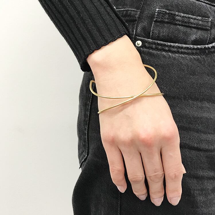 蝶々結びをモチーフに華奢でボリューム感あるオープンバングルに仕上げております。シンプルながらも遊び心を取り入れた個性的なアクセサリーとして。腕を包むような大ぶりボリューム感。一つで存在感あるアクセサリーとしてご愛用いただけます。