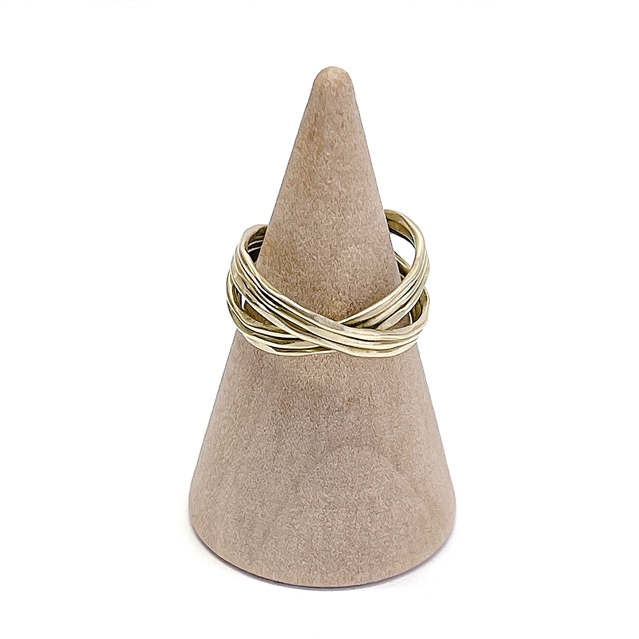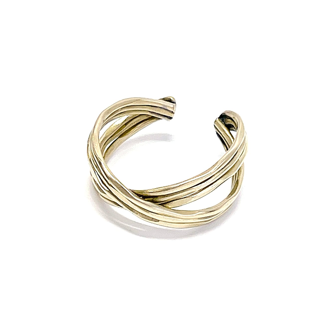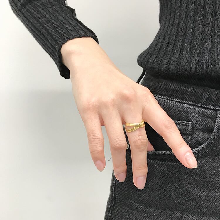 真鍮線を重ねて交差、指を包むような曲線のオープンリングに仕上げております。シンプルながらも遊び心を添えたデザインリングです。ディリーからお出かけのスタリイングまでご愛用いただけます。