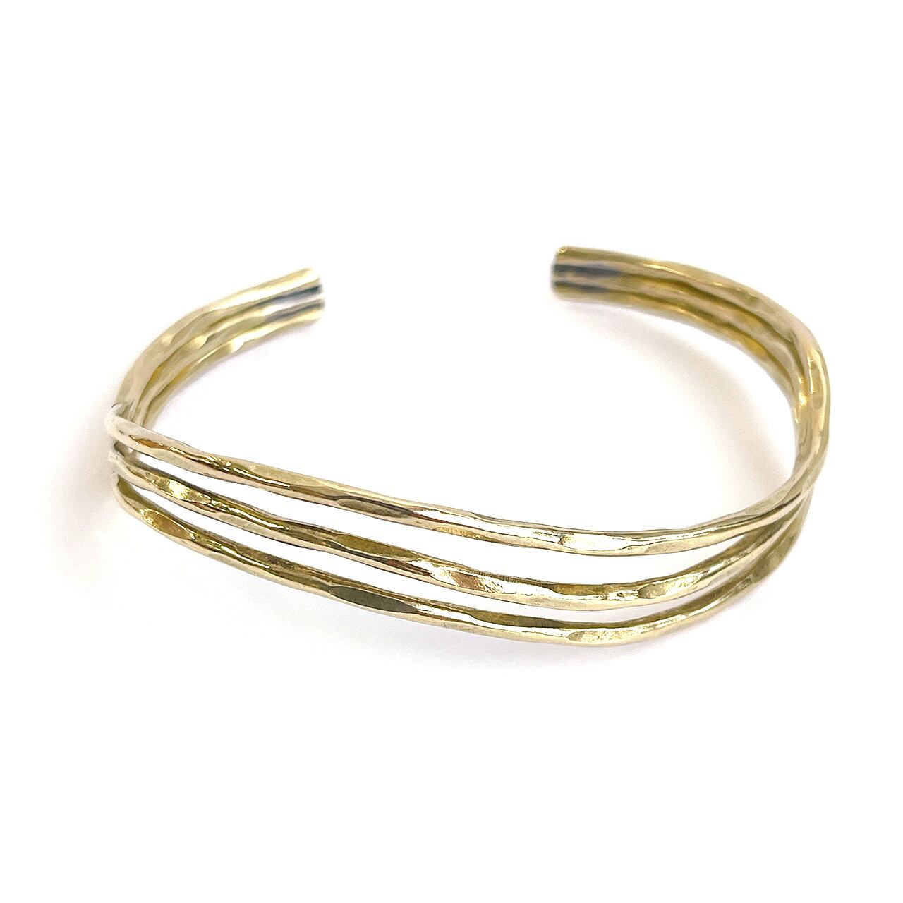 緩やかな曲線、個性的な手打ち凹凸感のボリューミーなオープンバングルです。表面の凹凸感で傷にも強く長年を共にするアクセサリーとして腕元をスタイリッシュに見せます。ひとつで存在感あるアクセサリーに、重ね付けをしてボリューム感あるアクセサリーに。カジュアルやディリーの楽しめる幸せなアクセサリーとしてぜひご愛用いただけると思います。
