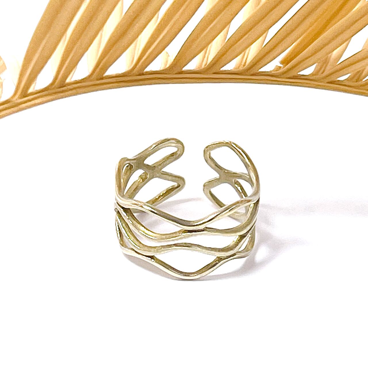 緩やかな波のような優美な曲線が重なり一つのリングに。指を包むような華奢な曲線デザインの大ぶりオープンリングです。