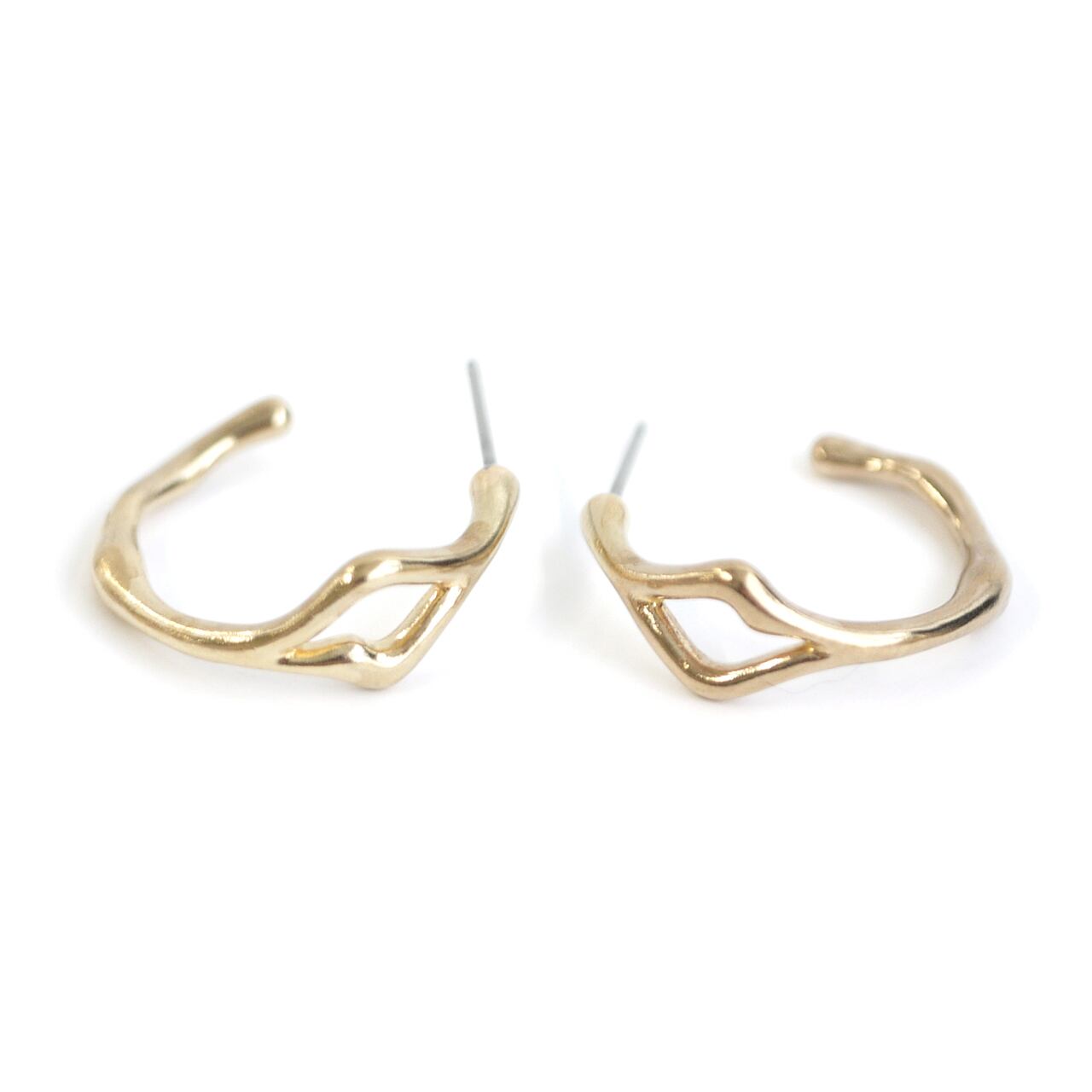 凹凸感ある手作り感の個性的でユニークなデザインのフープピアスです。普段使いのカジュアルなスタイルまで、幅広い場面で活躍するアクセサリーとしてご愛用いただけます。