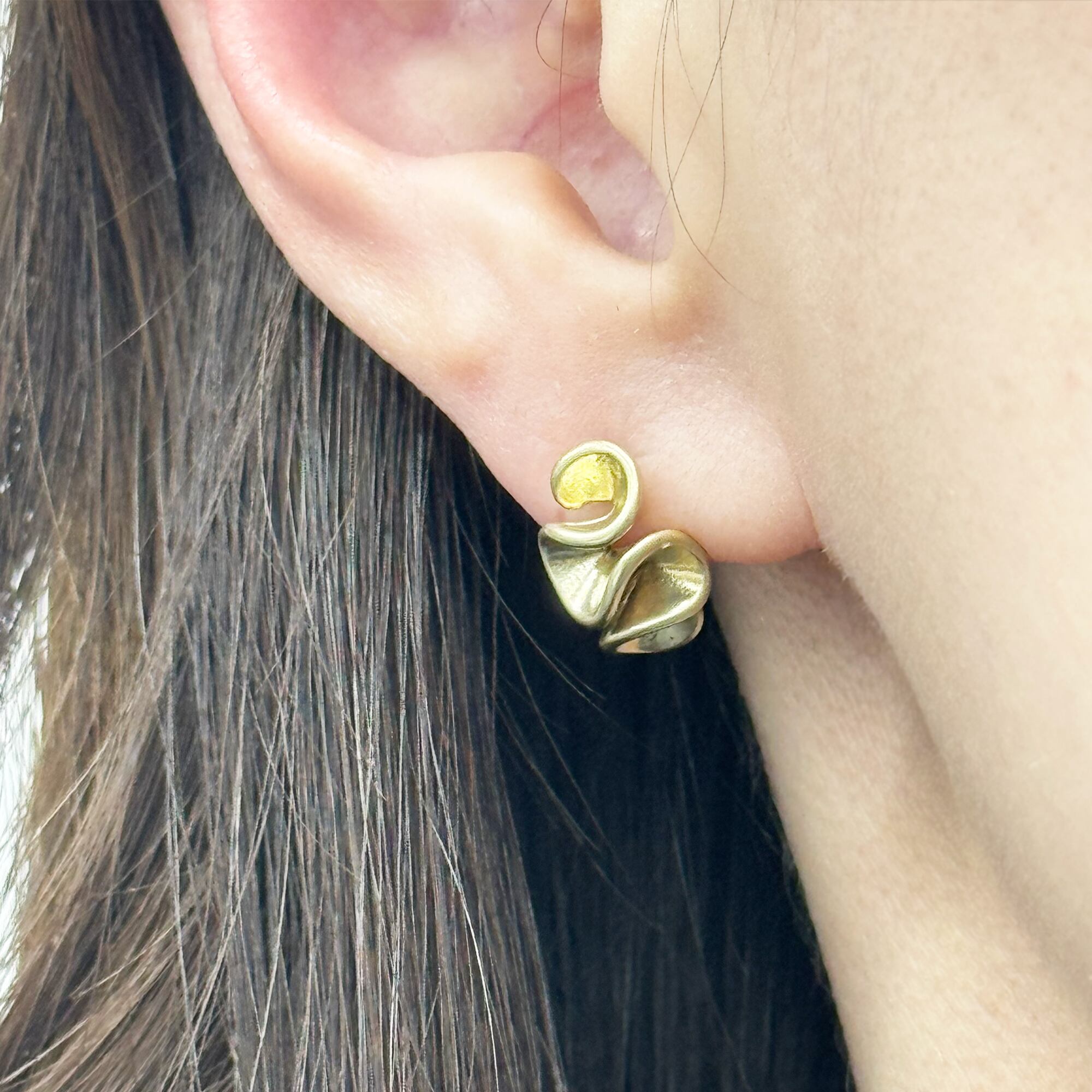 プチサイズながらも優雅な曲線を描く立体感を耳元で強調するスタッドピアスです。丸みと流れるような曲線は小さなサイズでも存在感を発揮します。ディリーからお出かけのスタイリングまでご愛用いただけます。